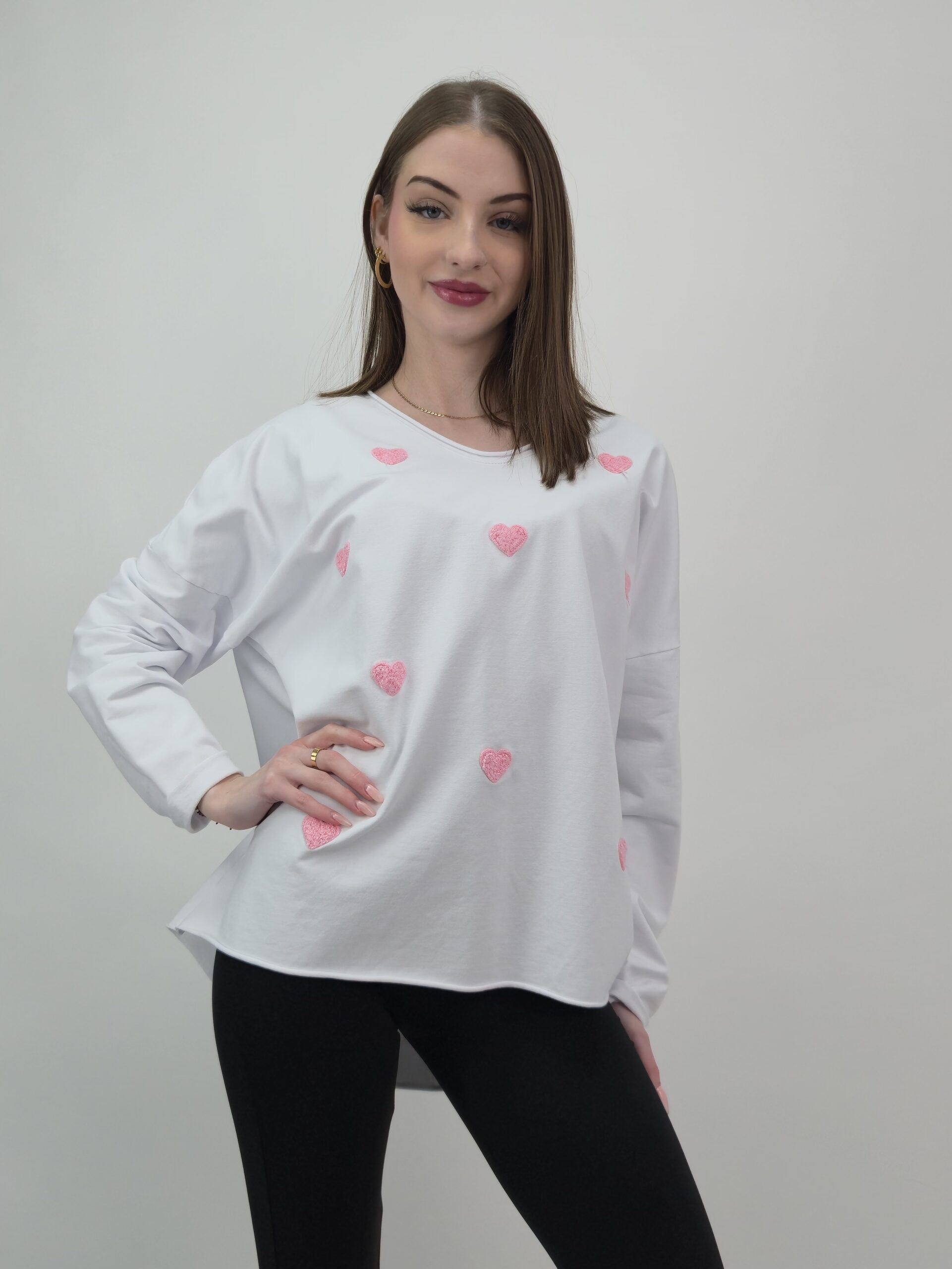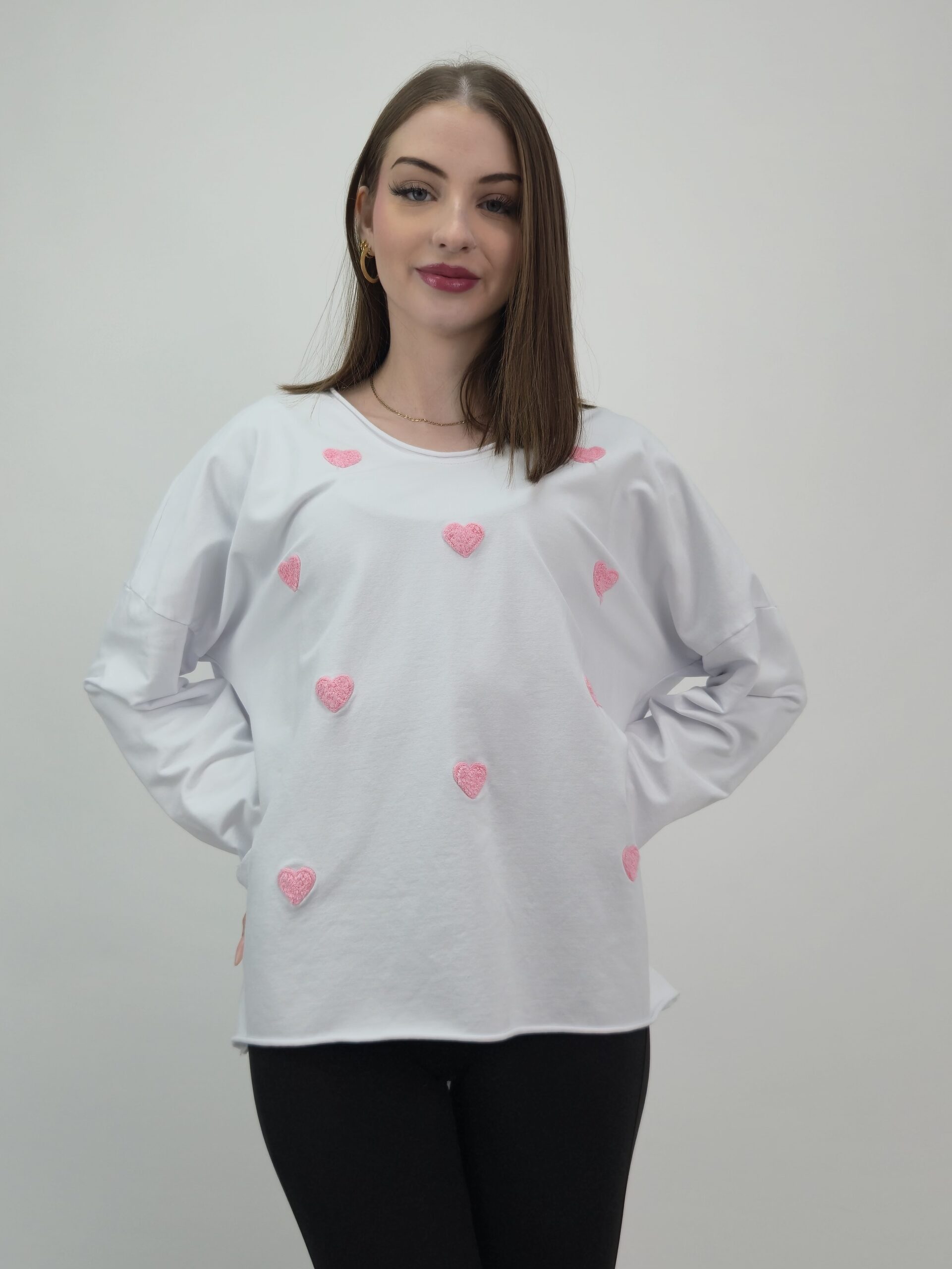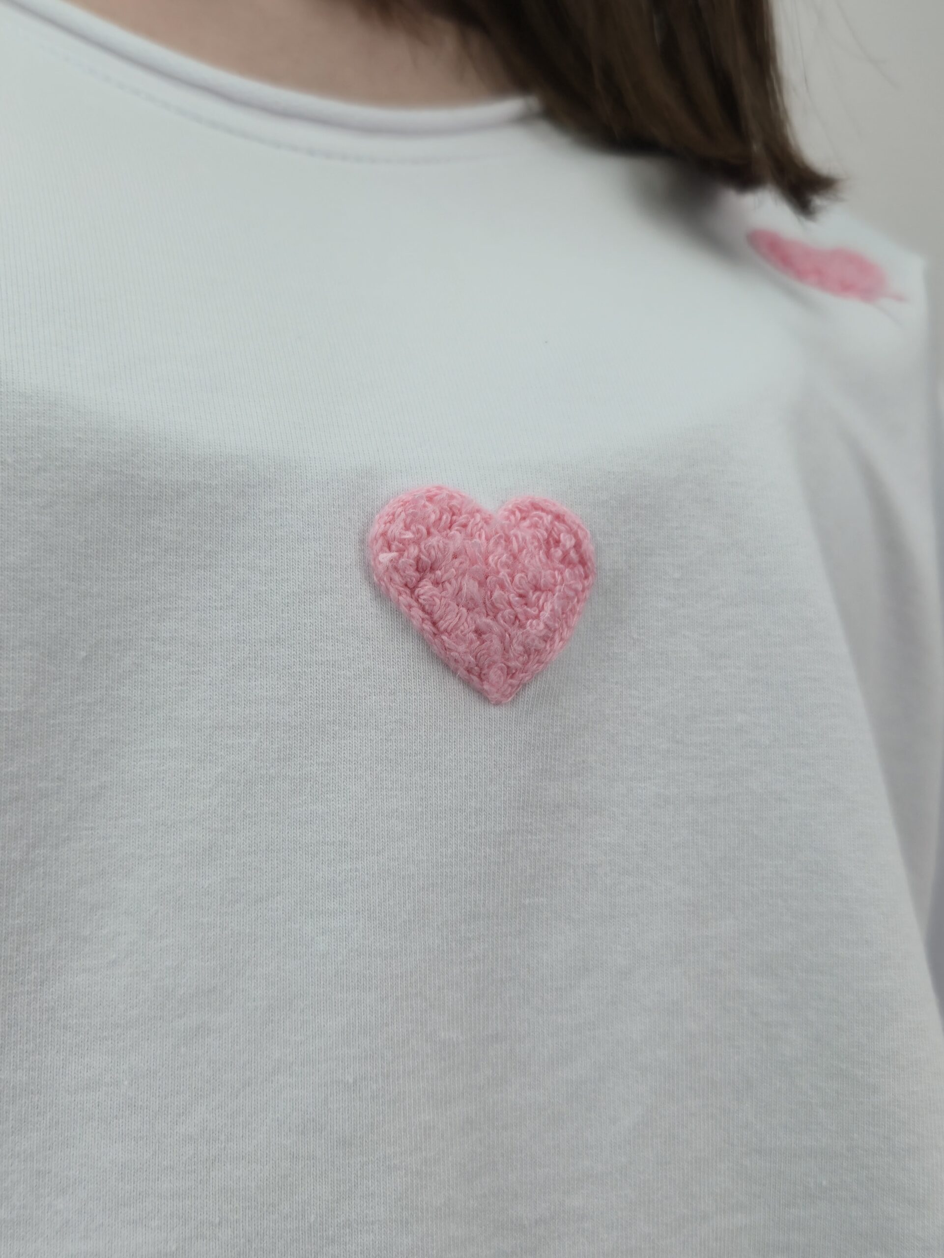 Efektowne Serduszka 3D: Przód bluzy zdobią wypukłe różowe serca o strukturze 3D, które nadają całości trójwymiarowego, uroczego charakteru.