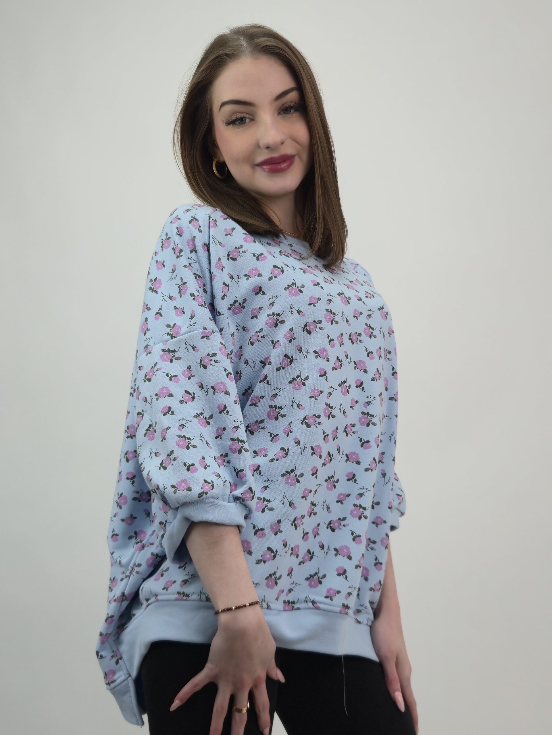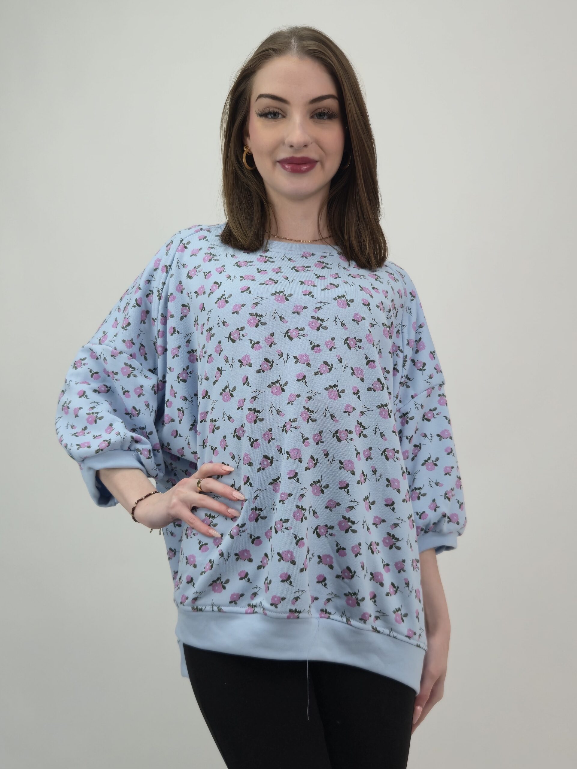 Bawełniana Bluza w Romantyczne Różyczki – Sky Blue Blossom