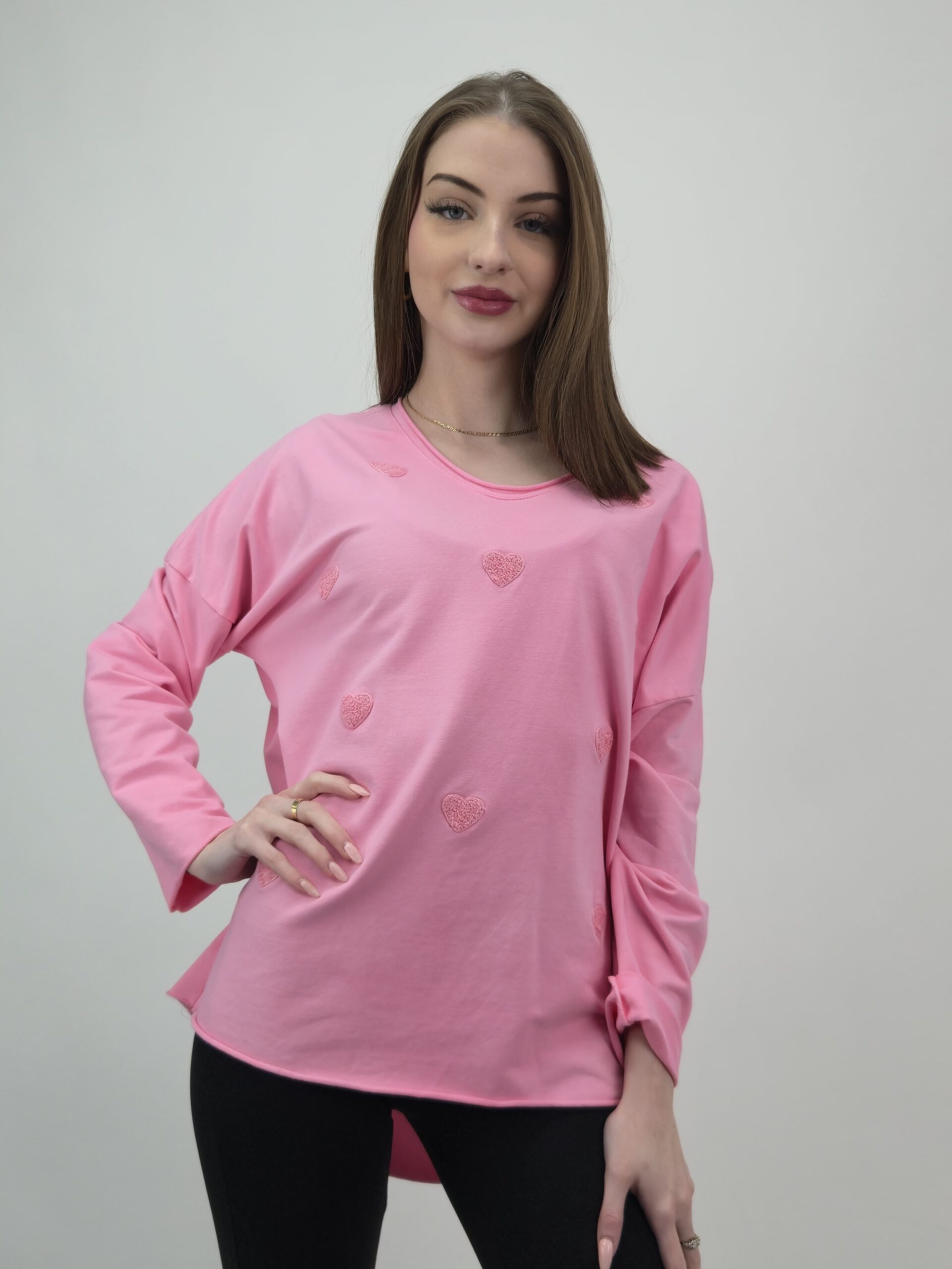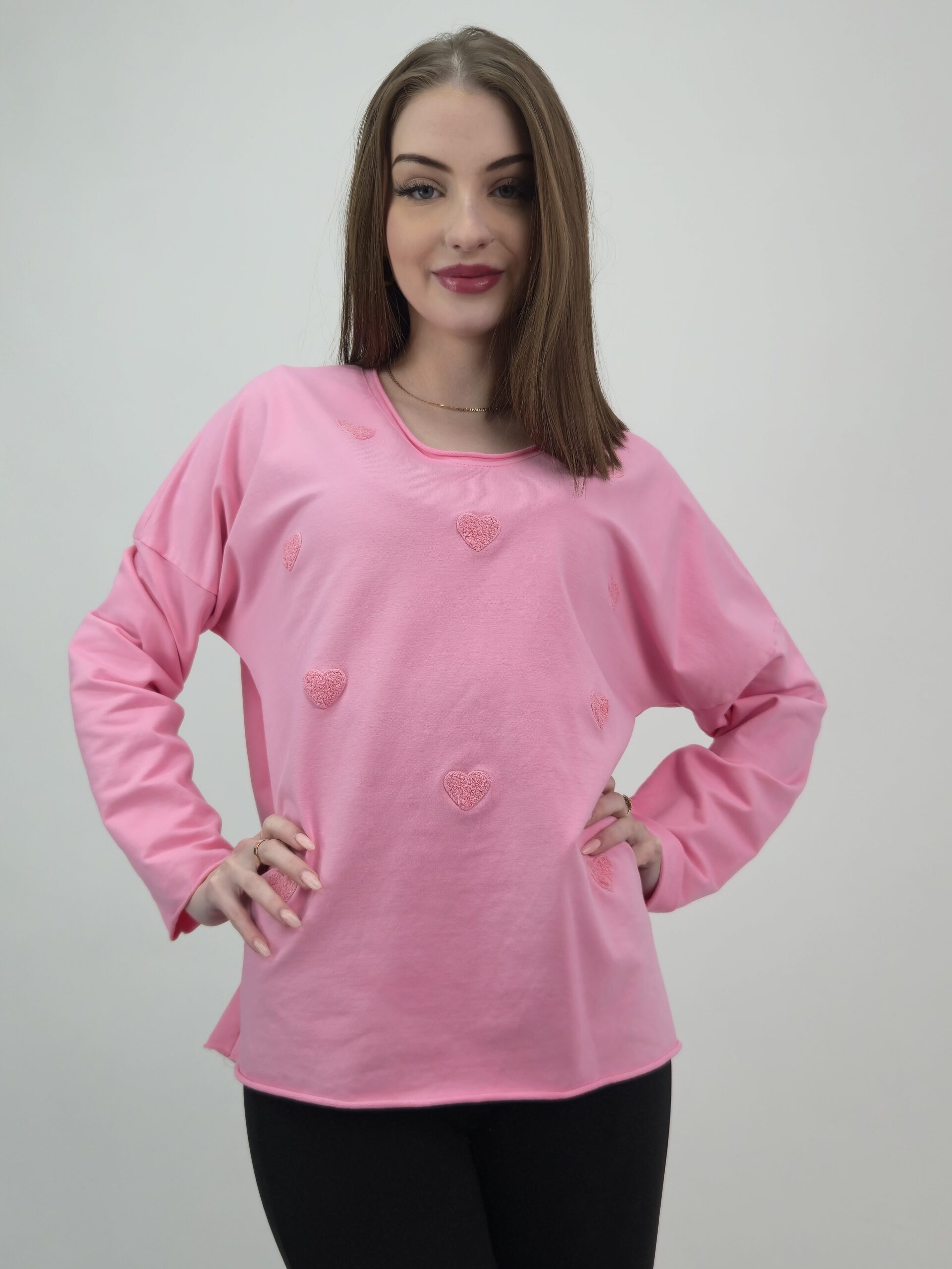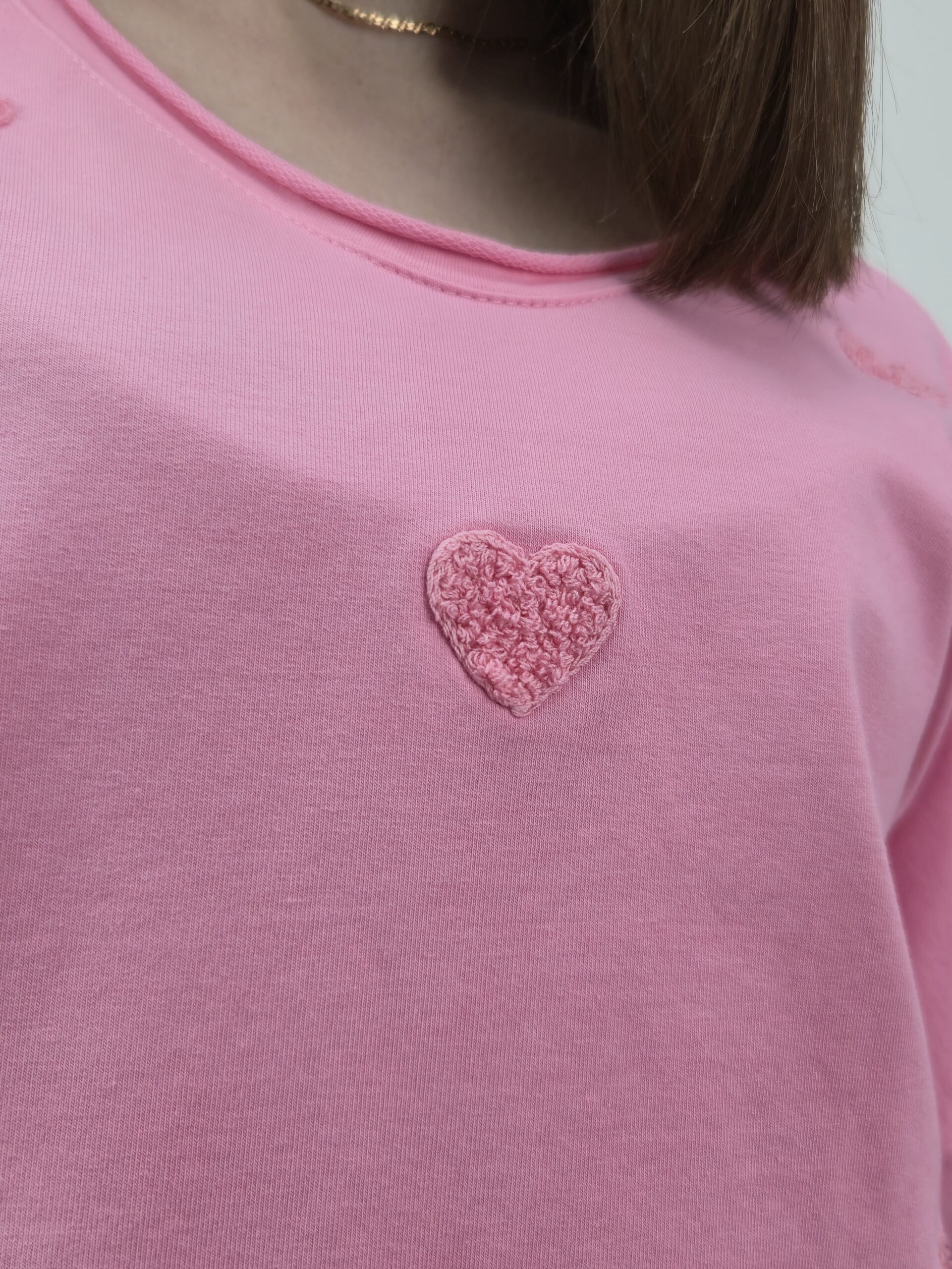 Efektowne Serduszka 3D: Przód bluzy zdobią wypukłe serca o strukturze 3D, które nadają całości trójwymiarowego, uroczego charakteru.