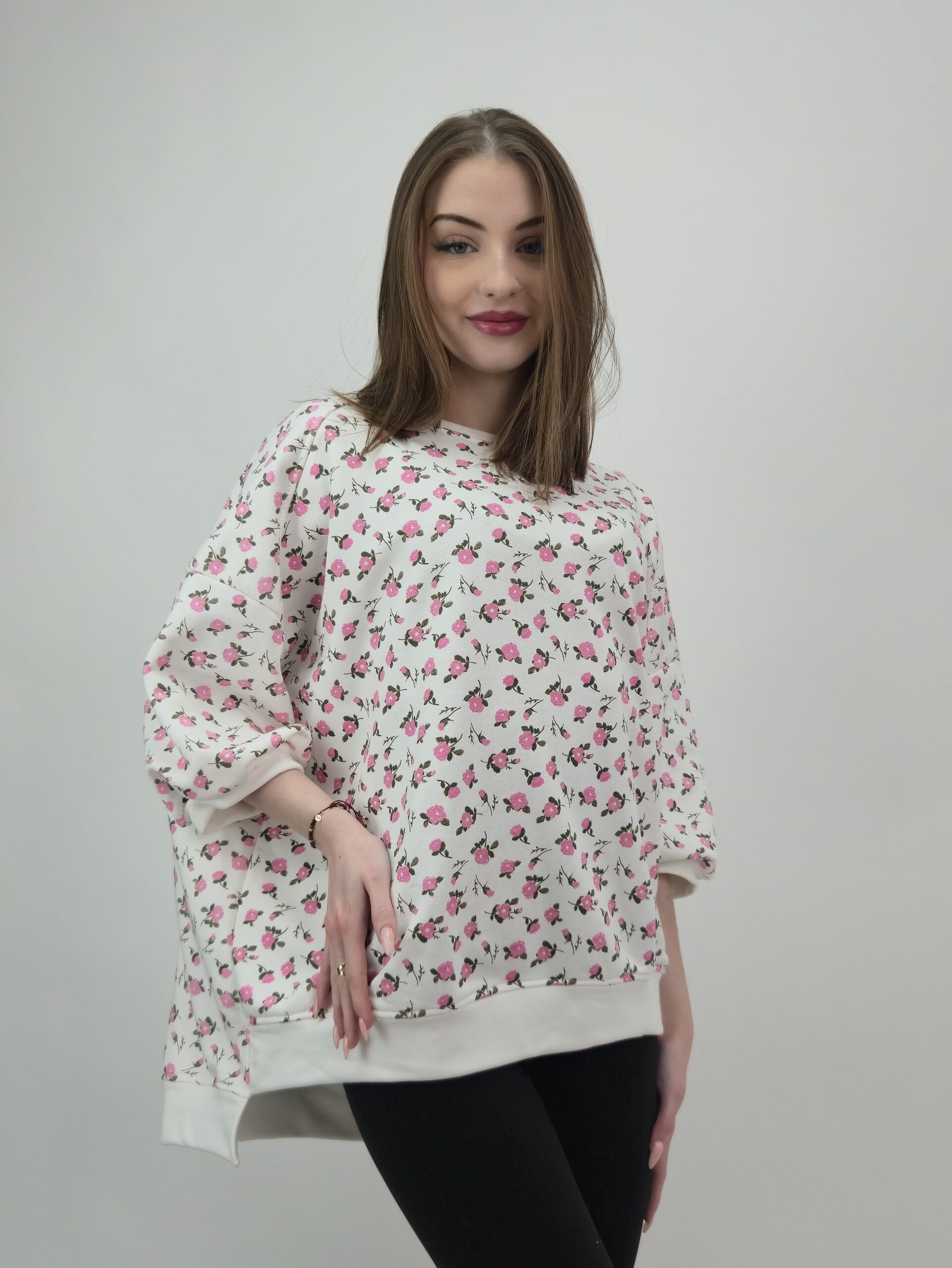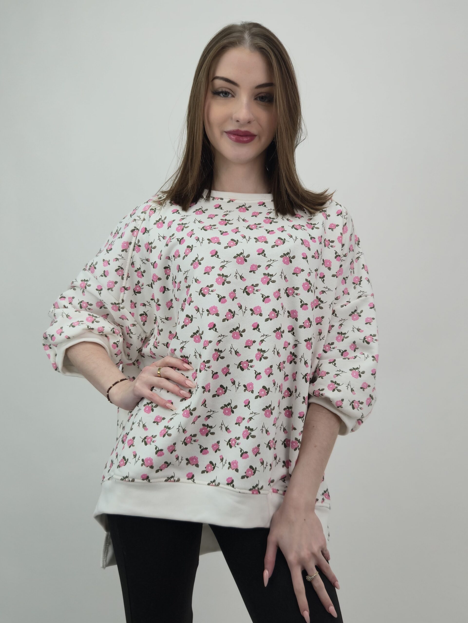 Bawełniana Bluza w Romantyczne Różyczki – Milky Cream