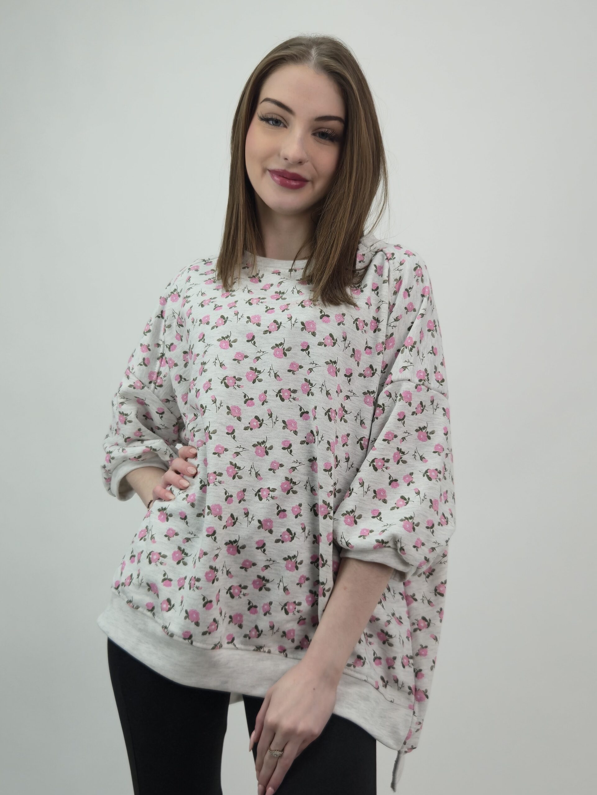 🚀 Zapewniamy błyskawiczną wysyłkę – szara bluza w różyczki zostanie nadana priorytetowo, abyś mogła cieszyć się nową stylizacją bez zbędnej zwłoki.