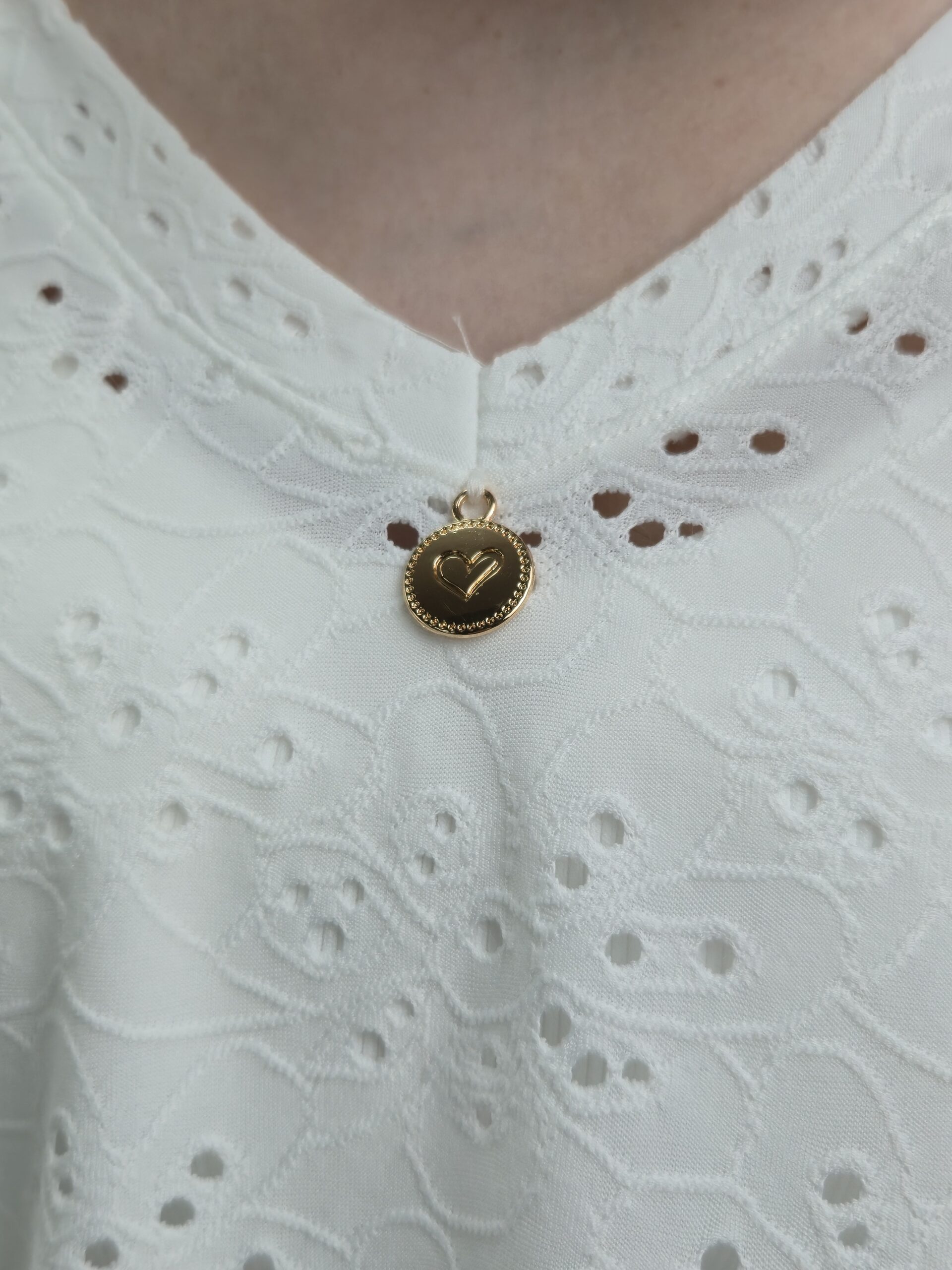 • ozdobna okrągła blaszka przy dekolcie
