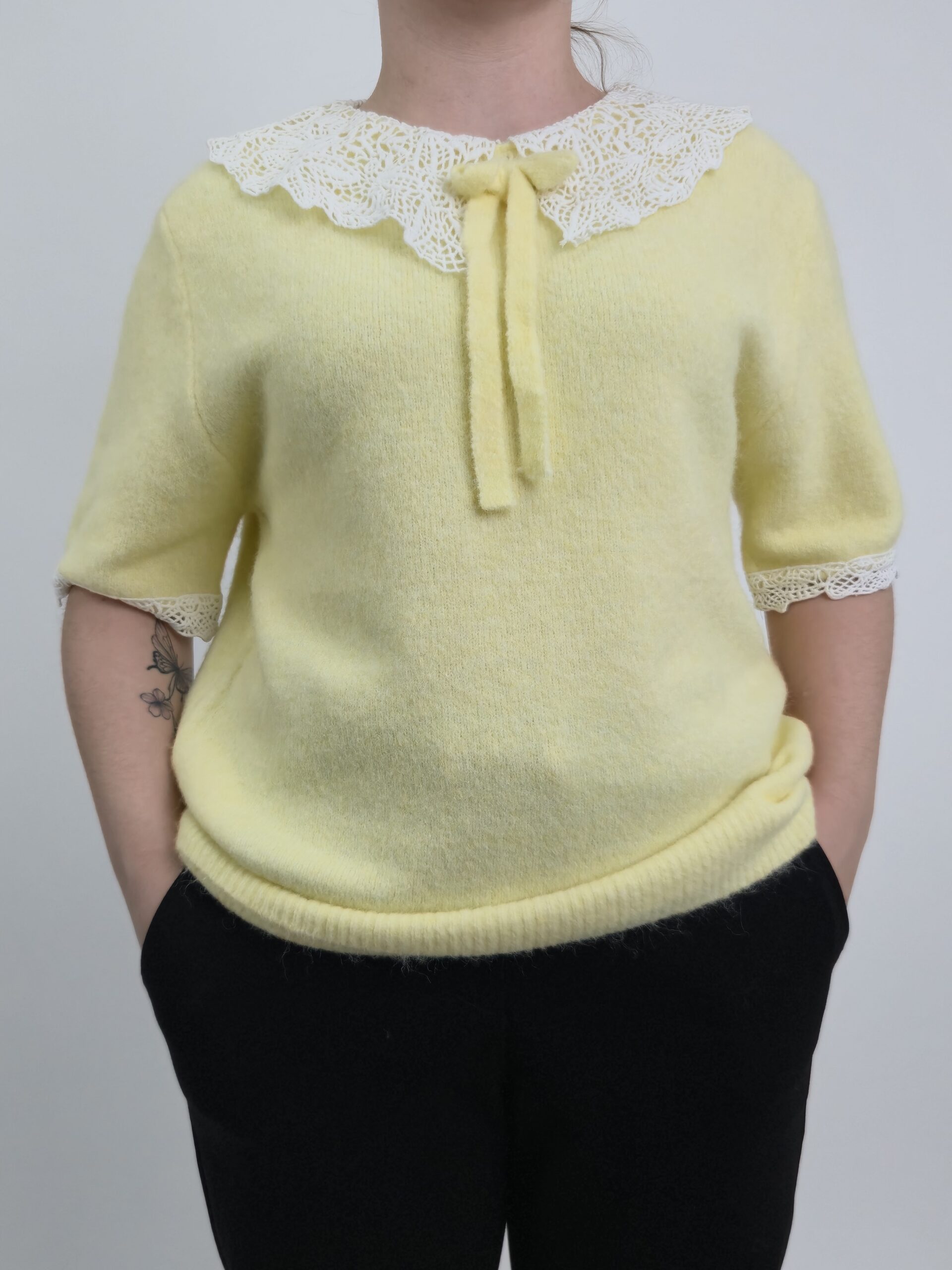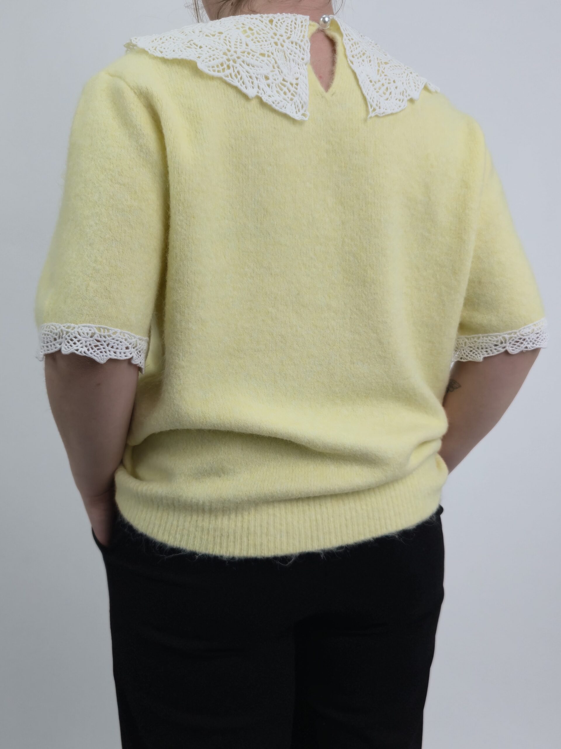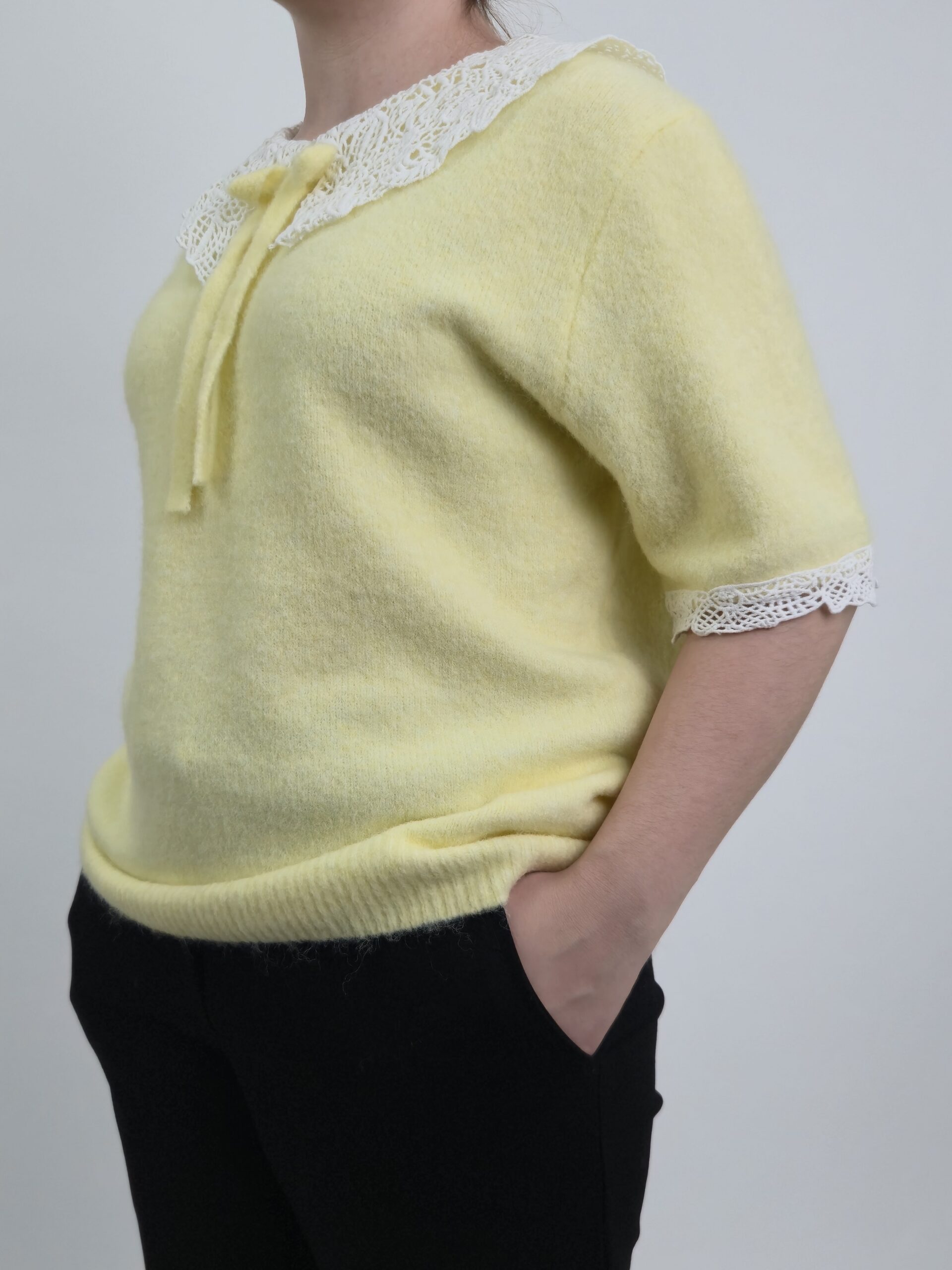 Dzianinowa Bluzka z Ażurowym Kołnierzem
