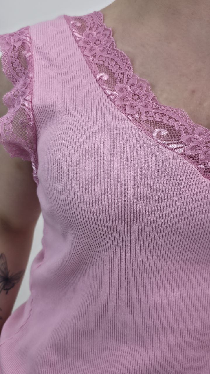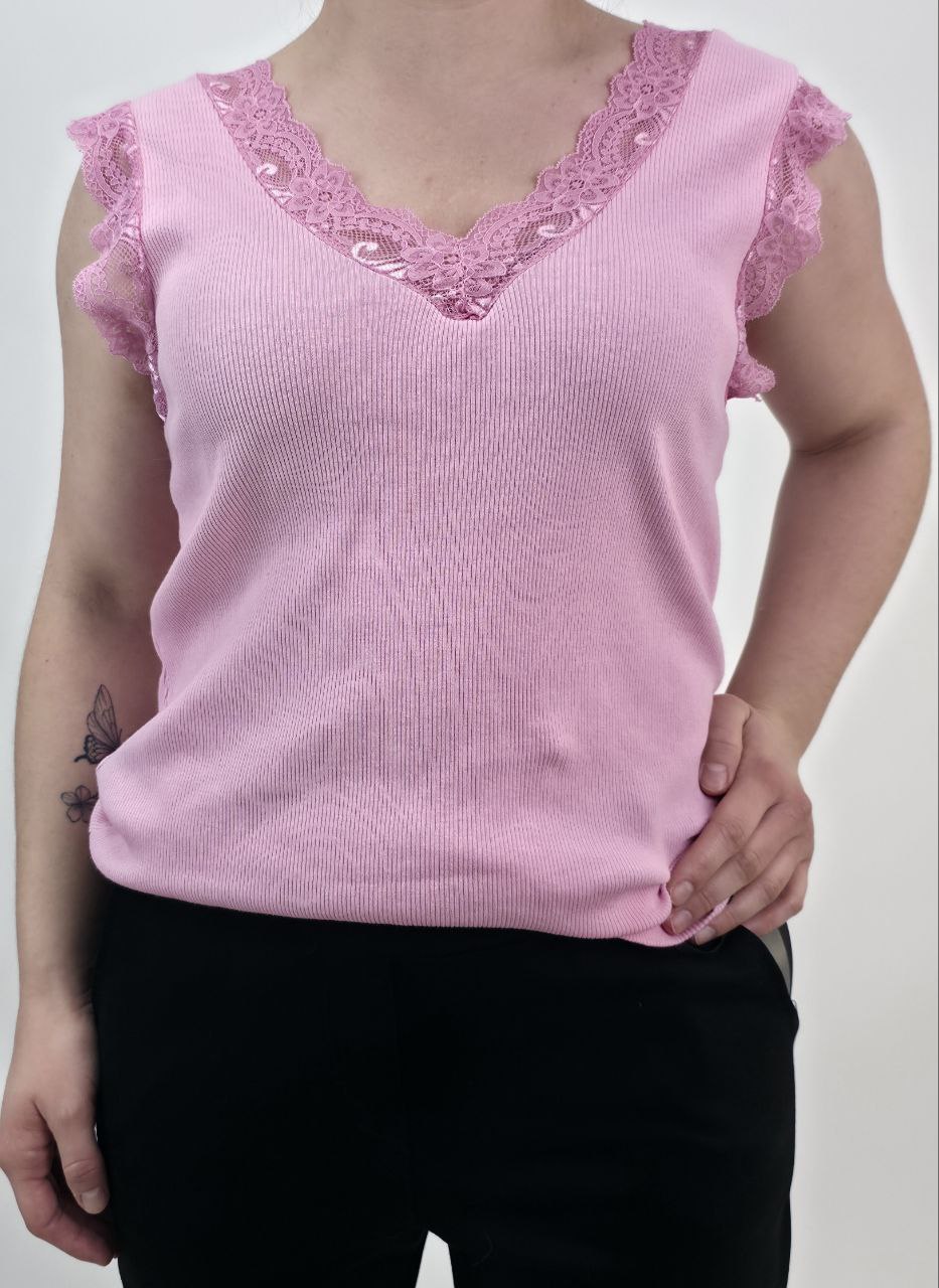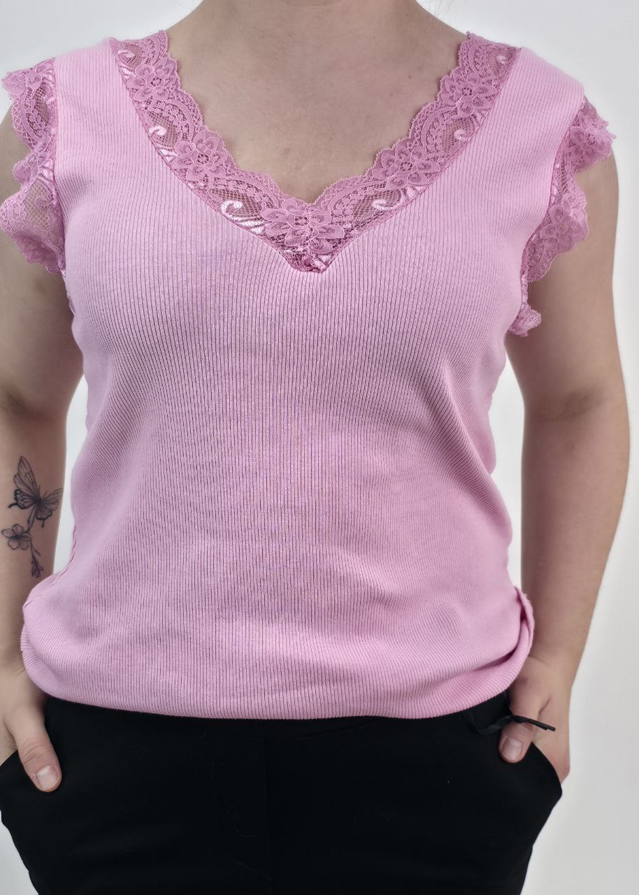 Bawełniana Bluzka z Koronką – Cukierkowy róż