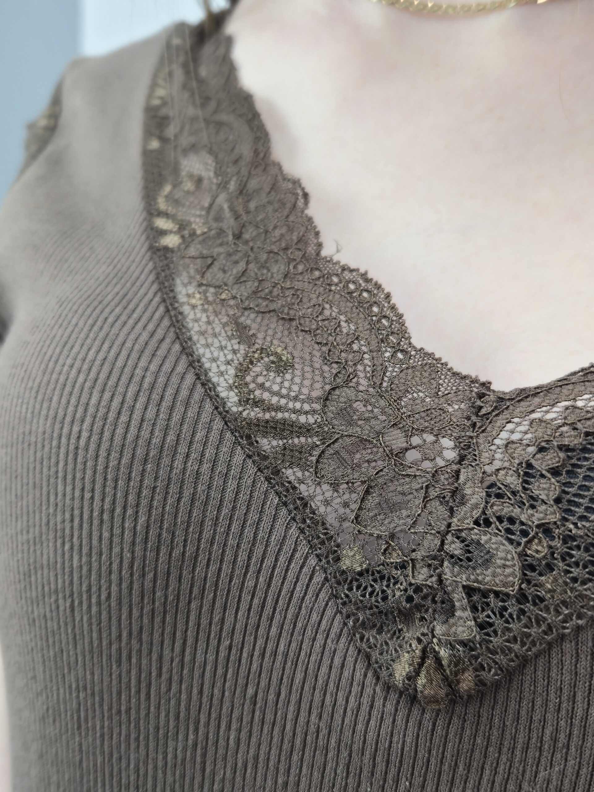 Bawełniana Bluzka z Koronką – Gorzka Czekolada