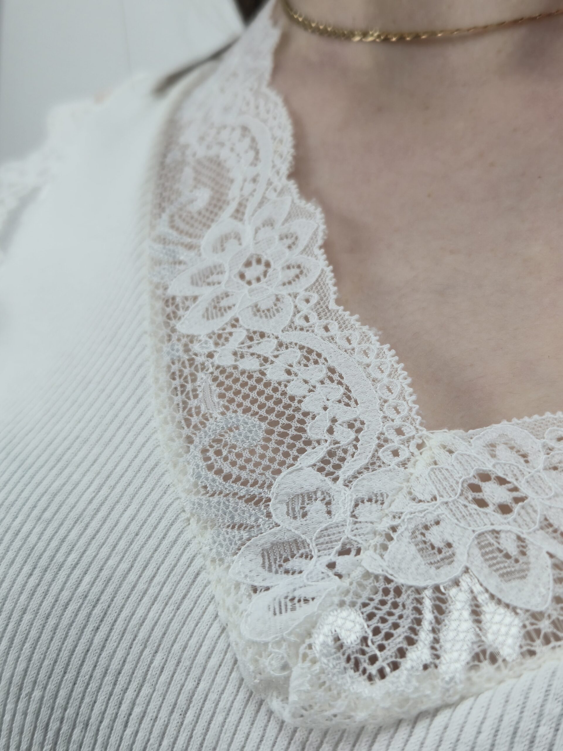 Bawełniana Bluzka z Koronką – Śmietankowy