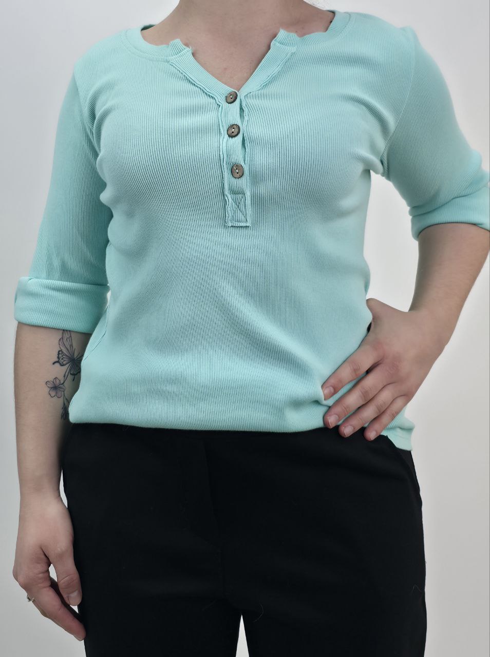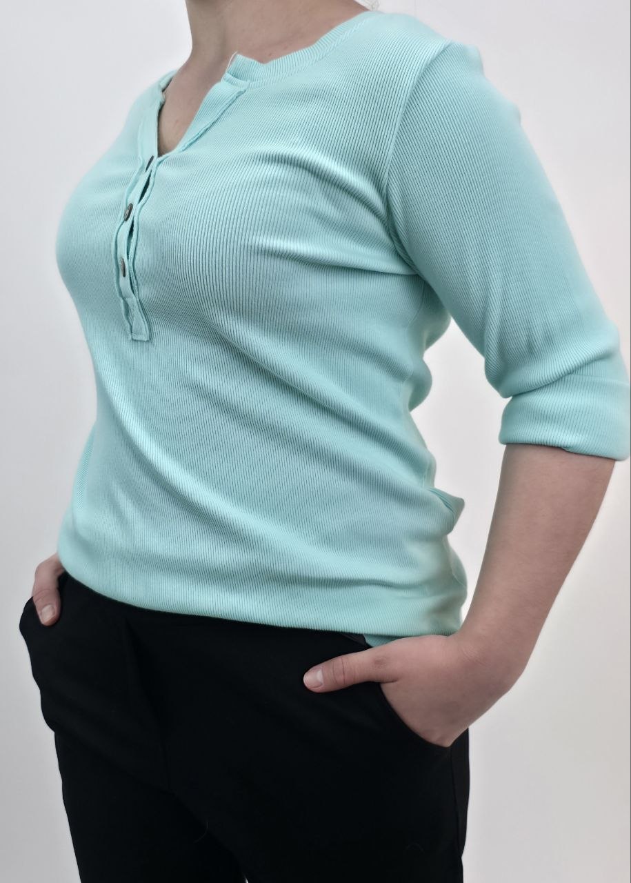 Szlachetna Struktura: Wyraźne prążkowanie materiału nie tylko wzbogaca wizualnie produkt, ale również sprawia, że bluzka pięknie dopasowuje się do sylwetki, zachowując swój pierwotny kształt.