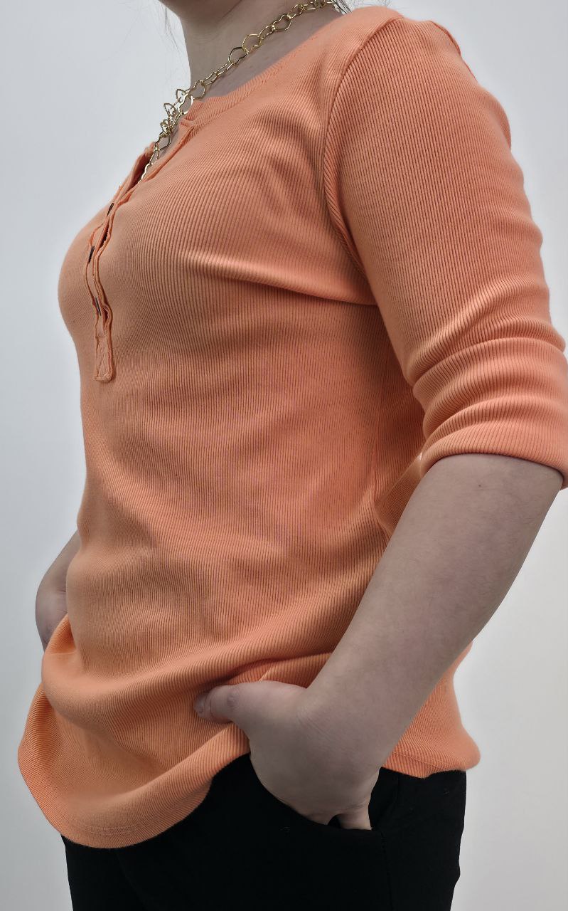 Szlachetna Struktura: Wyraźne prążkowanie materiału nie tylko wzbogaca wizualnie produkt, ale również sprawia, że bluzka pięknie dopasowuje się do sylwetki, zachowując swój pierwotny kształt.