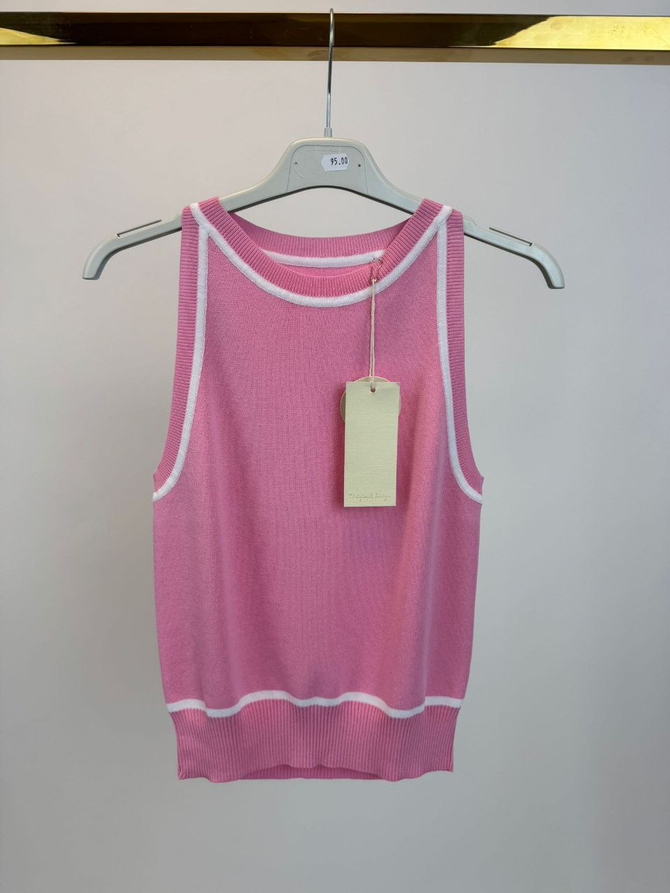 Dzianinowa Bluzka bez Rękawów z Lamówką – Cukierkowy Róż