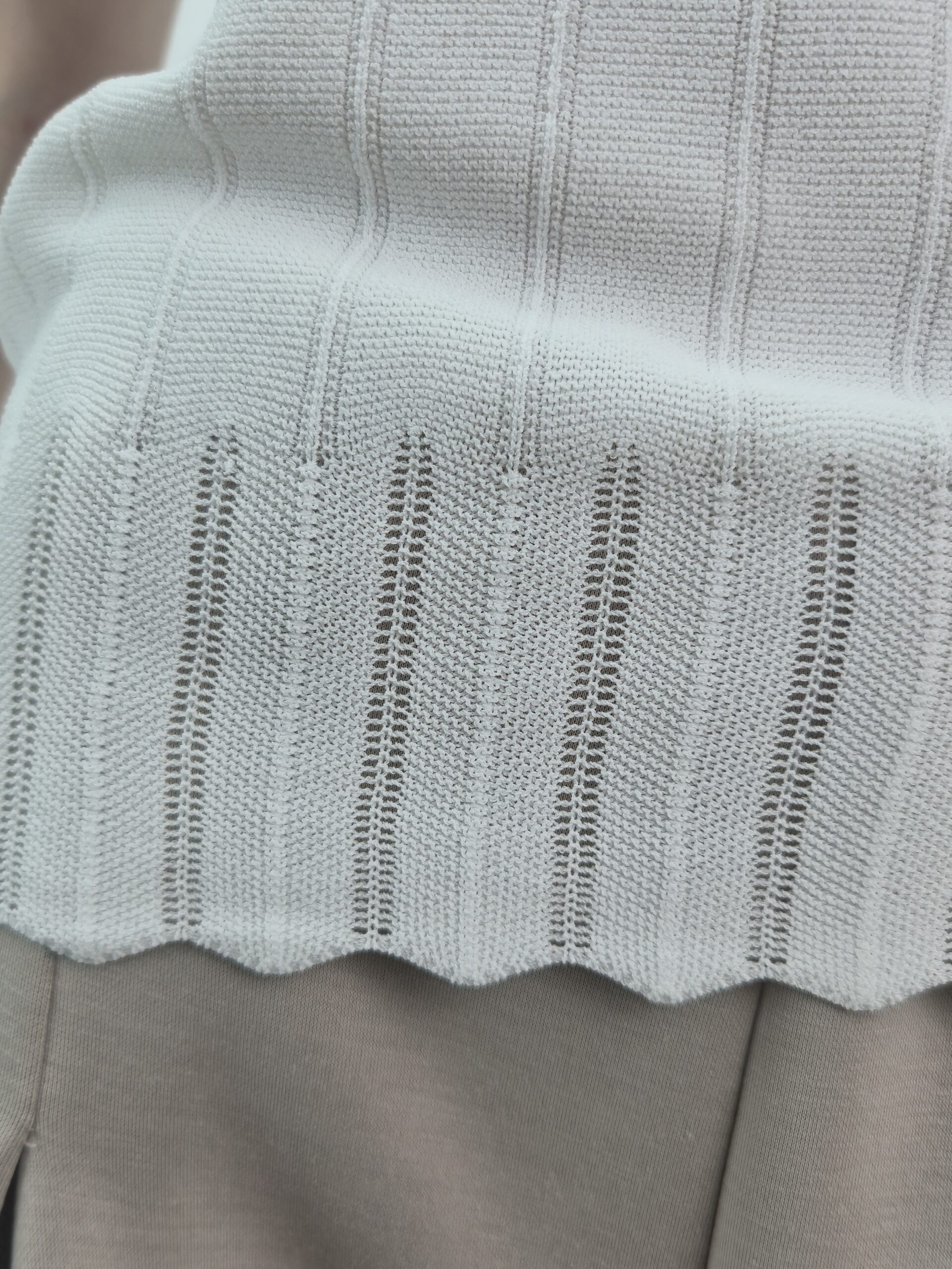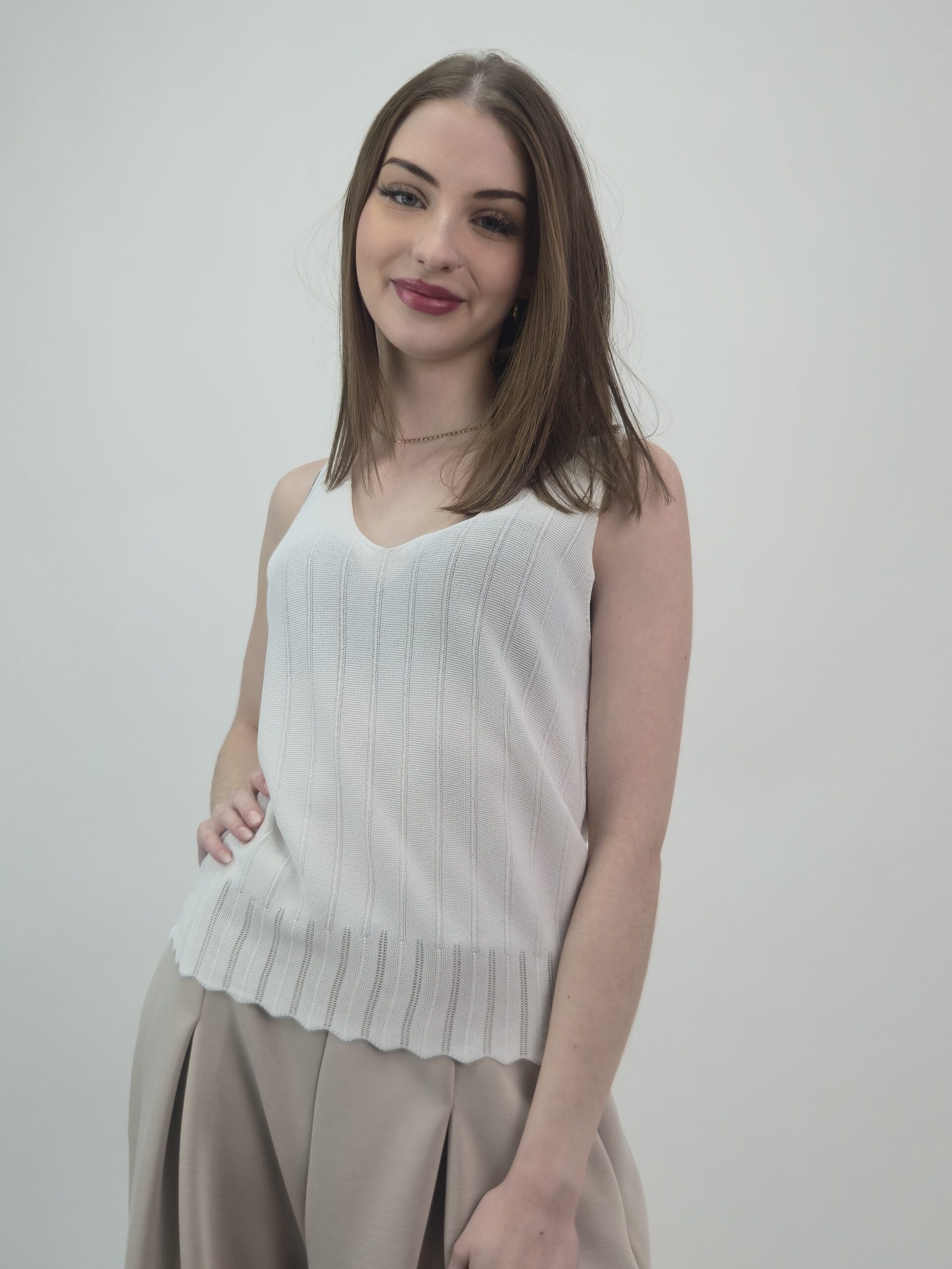 Dzianinowa Bluzka bez Rękawów z Tłoczonym Prążkiem – Śmietankowy