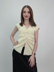 Żółta bluzka damska z ozdobnym kwiatem