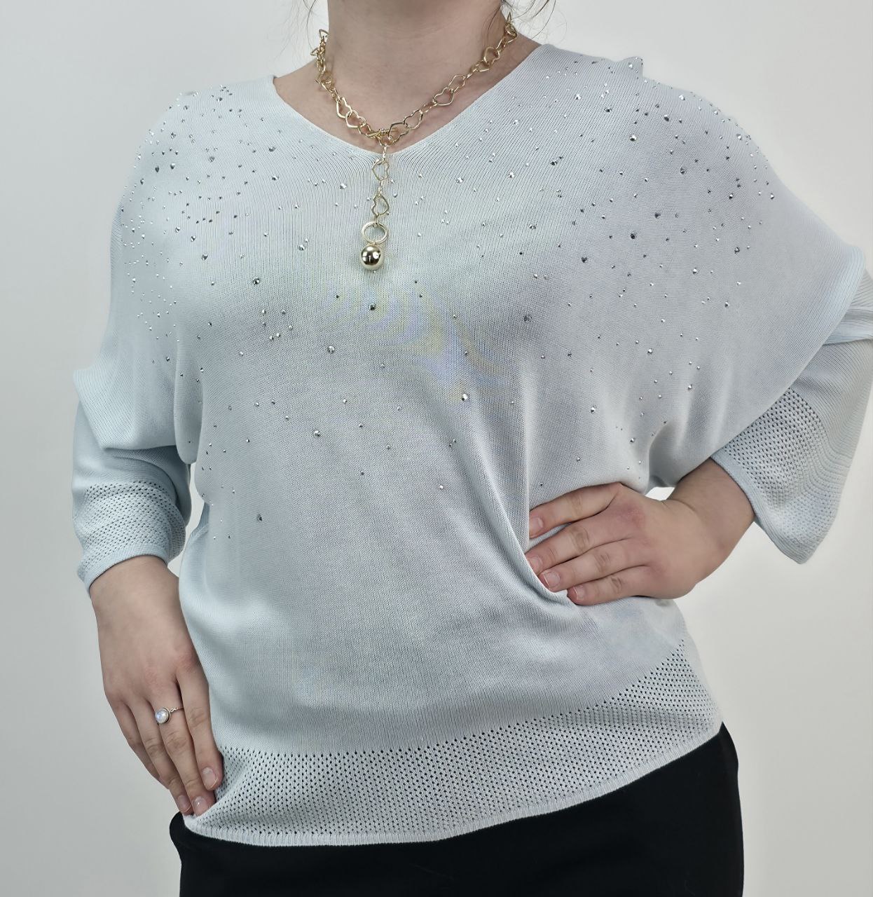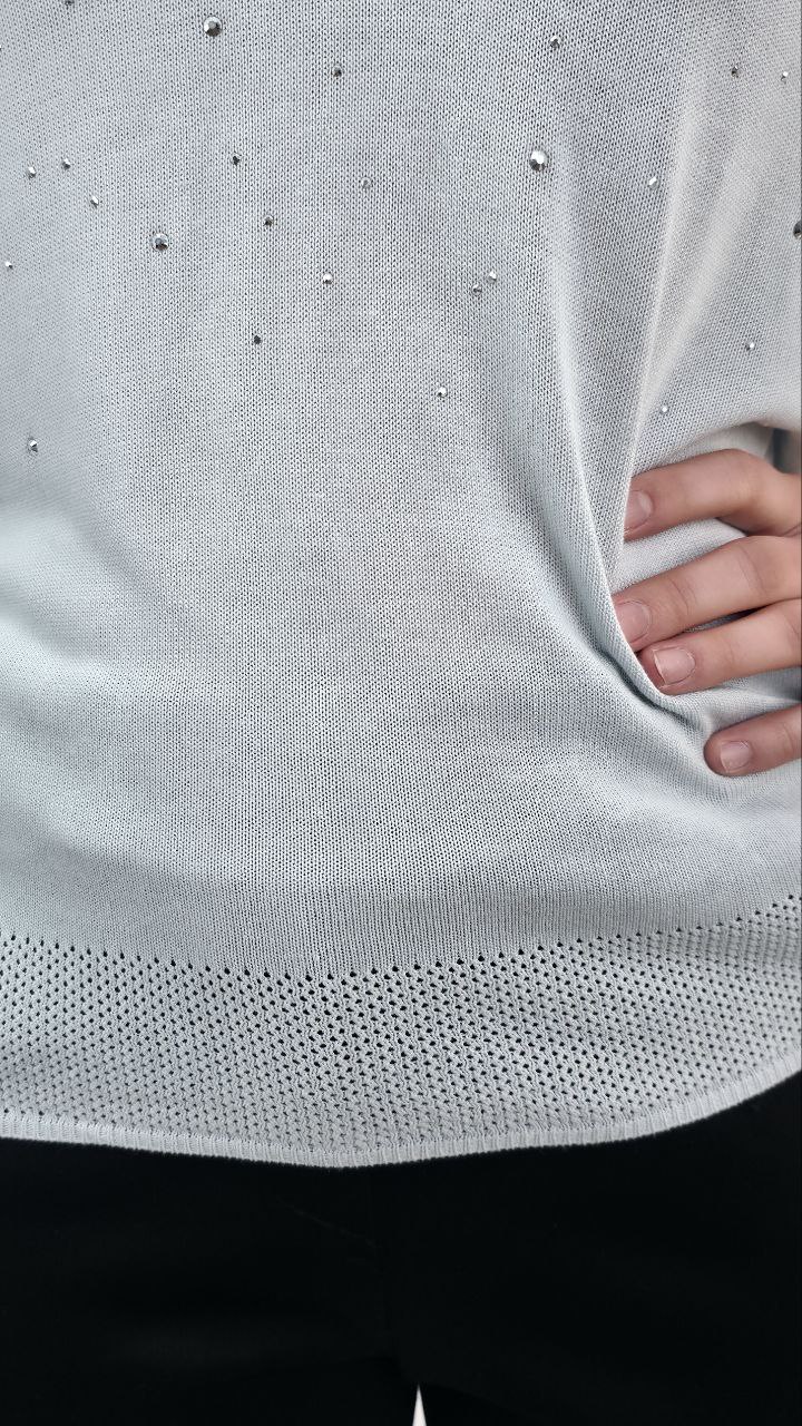 Dzianinowa Bluzka z Kryształkami – Miętowy Błękit