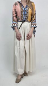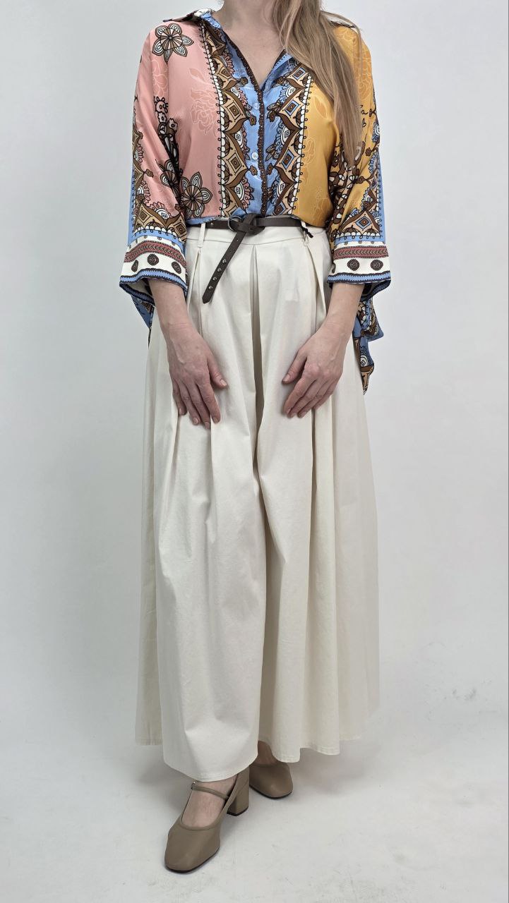 Tunika doskonale pasuje do szerokich spodni, jeansów lub szortów. Możesz nosić ją luźno albo lekko wpuszczoną z przodu. Co więcej, świetnie sprawdzi się również jako narzutka na top, dzięki czemu zyskujesz wiele możliwości stylizacji.