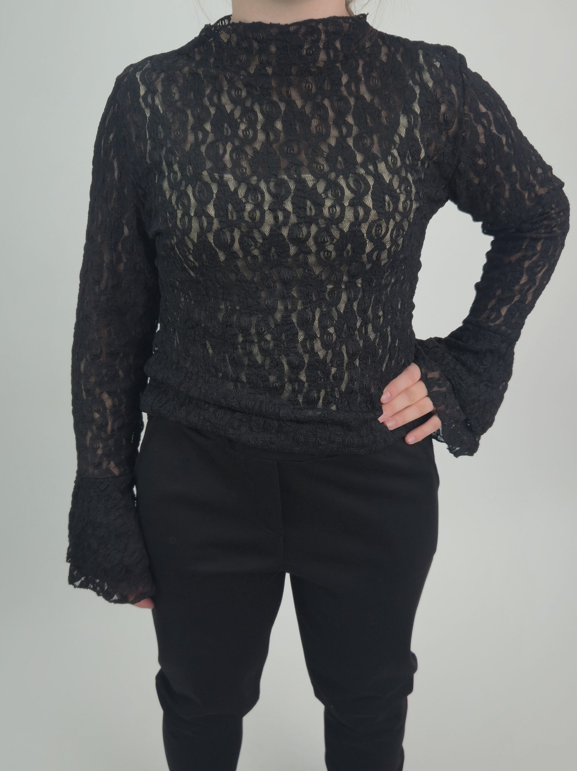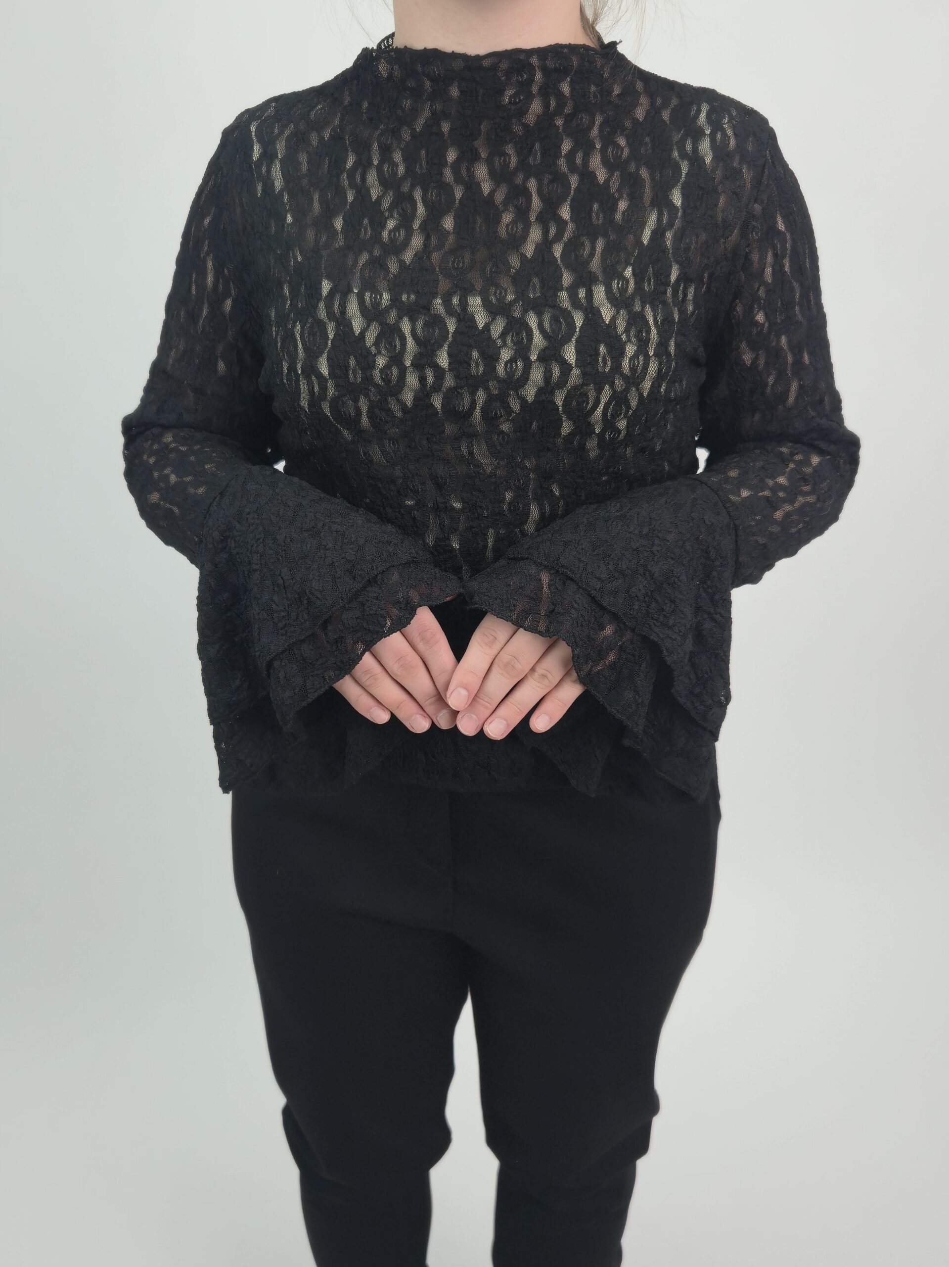 Luksusowa Bluzka Koronkowa z Dzwonkowym Rękawem