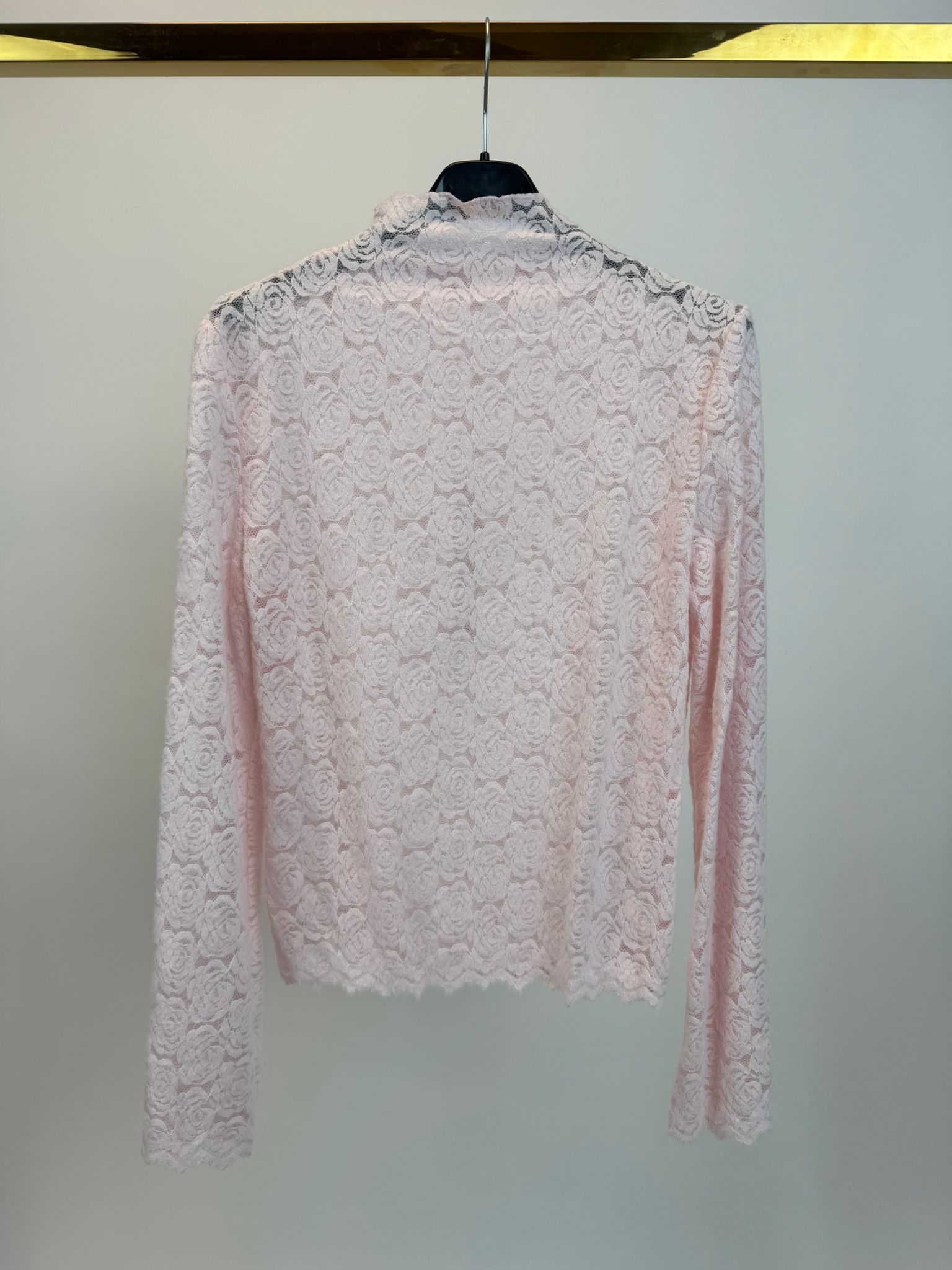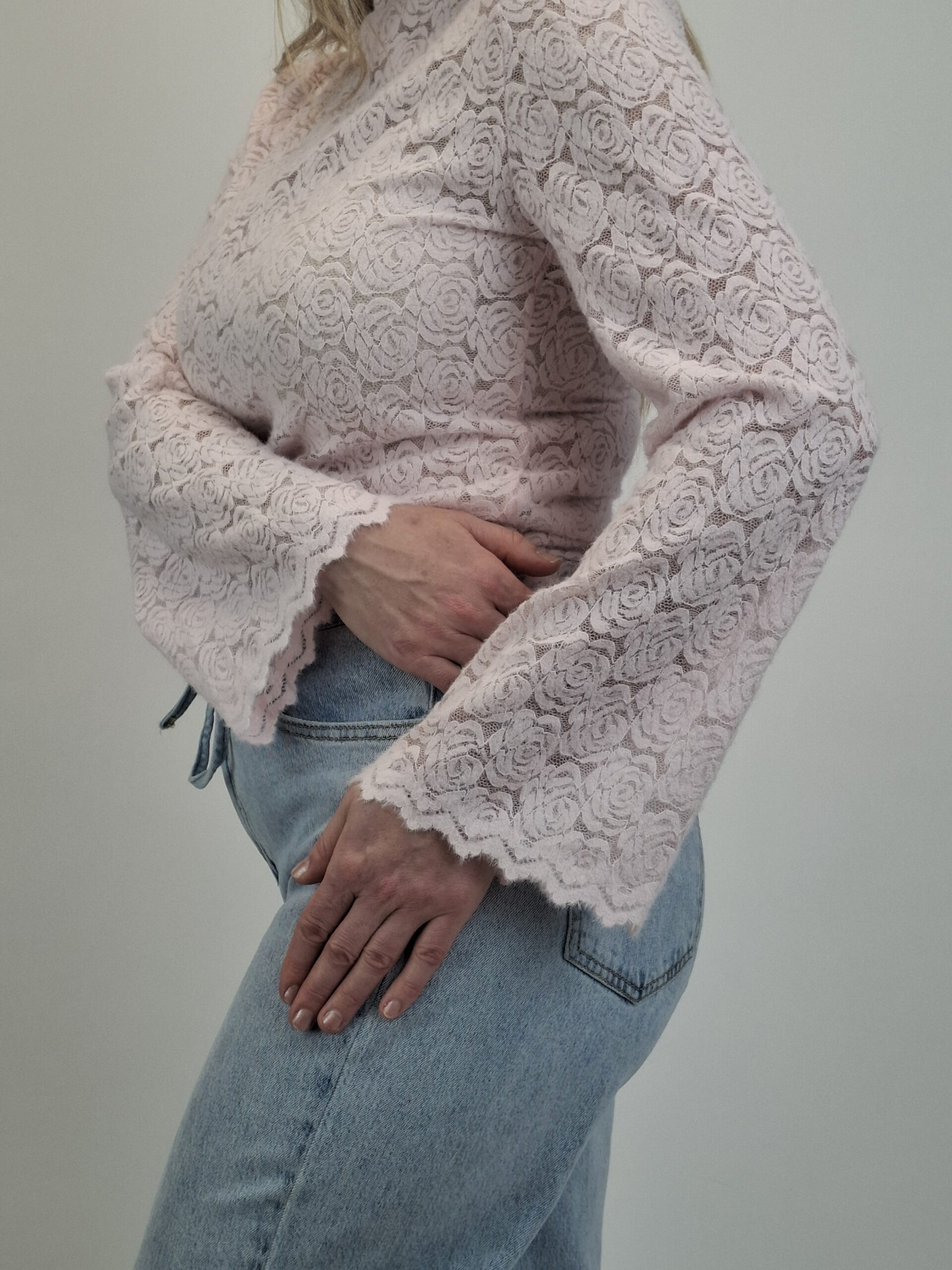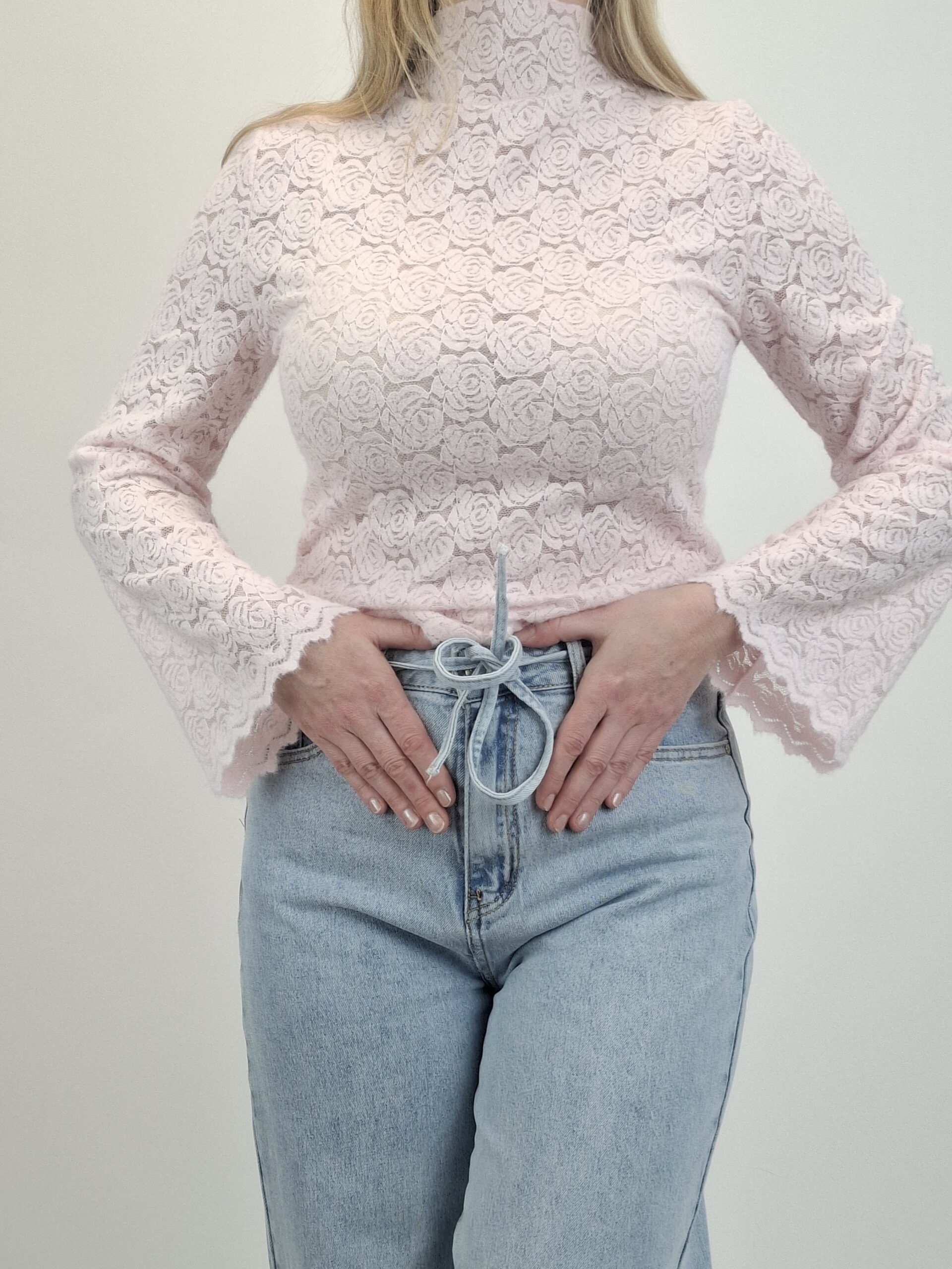 Elegancka Bluzka Koronkowa z Motywem Róż – Jasny Róż