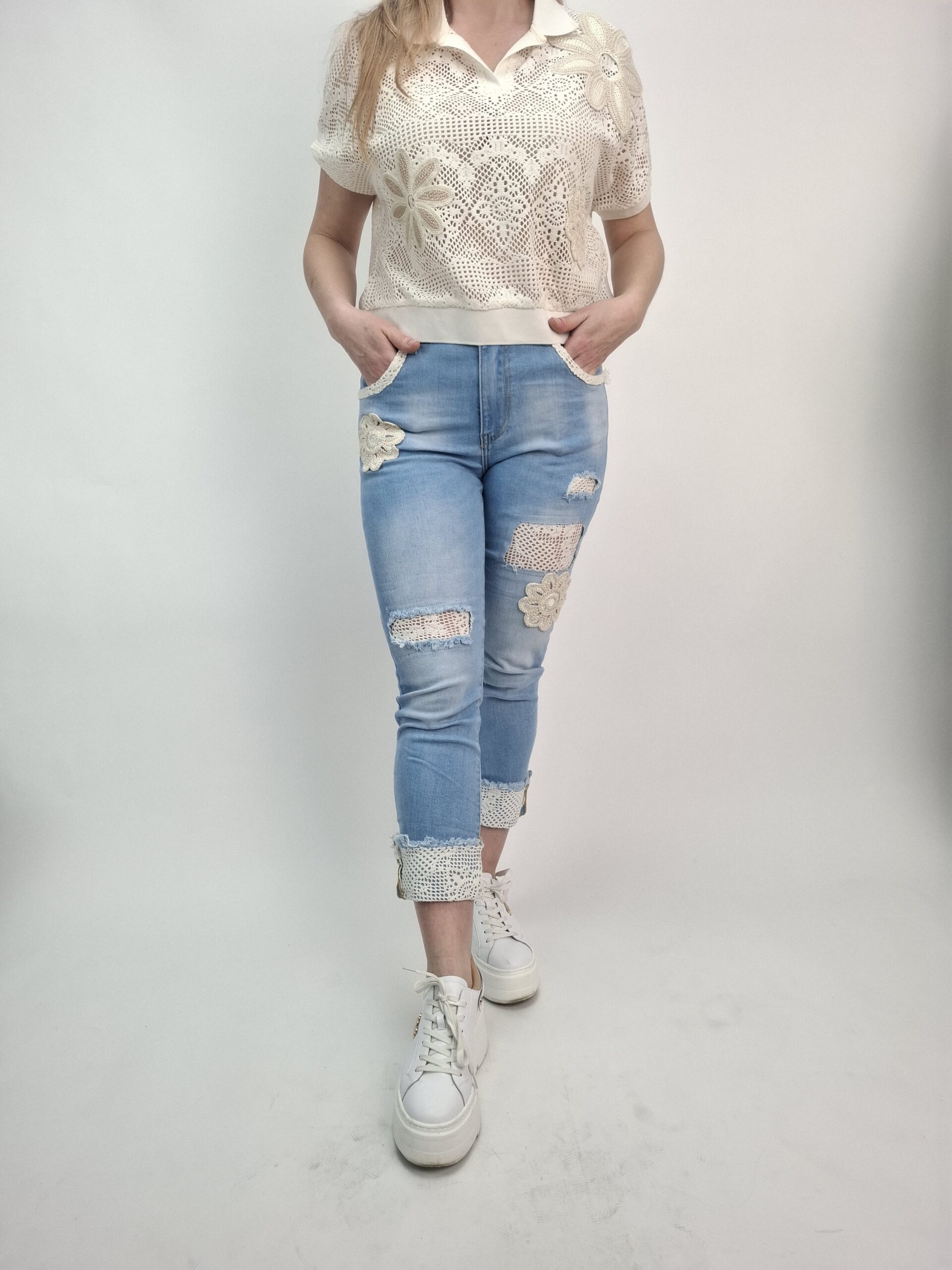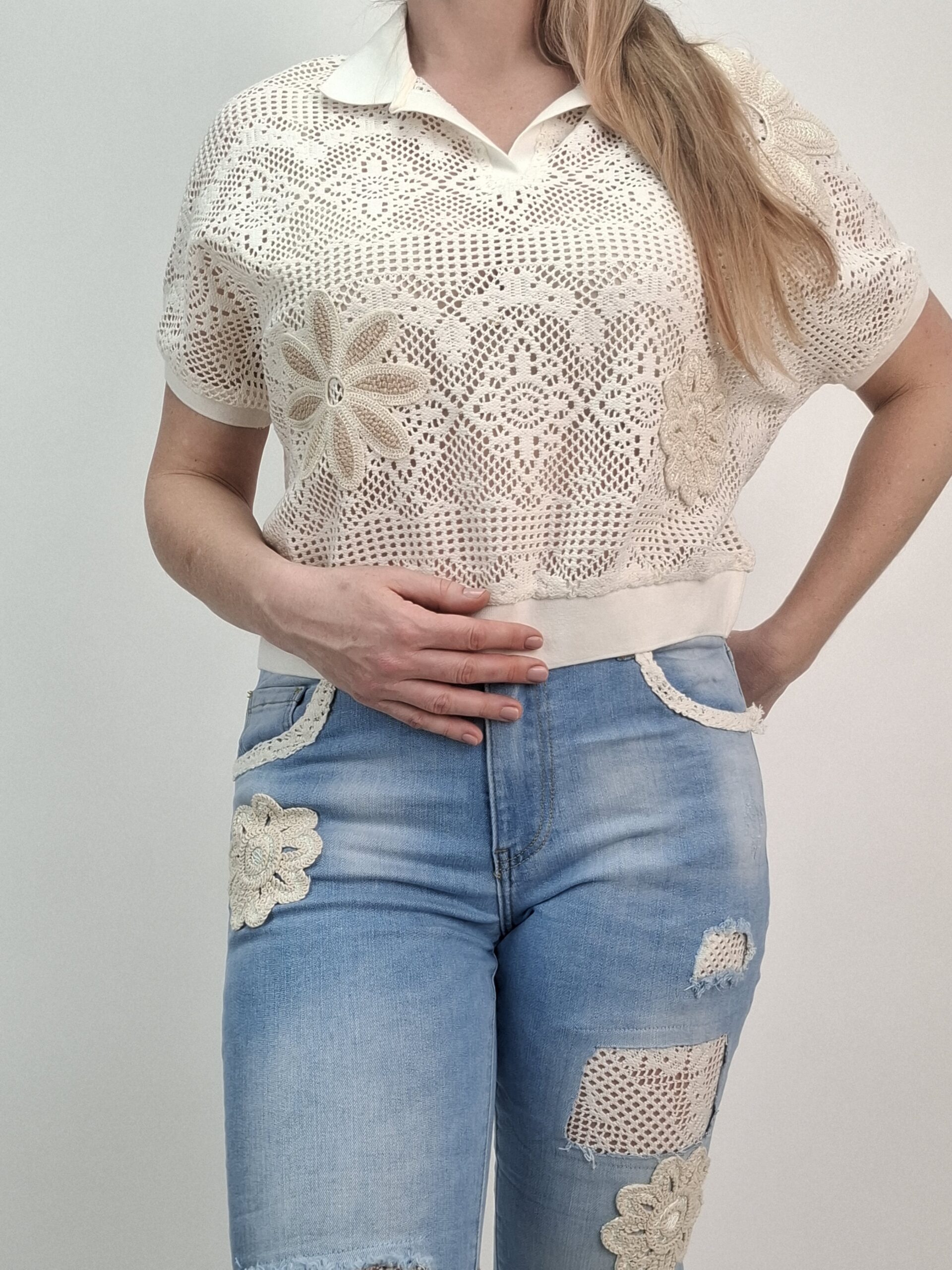 Bluzka ażurowa polo z kwiatami