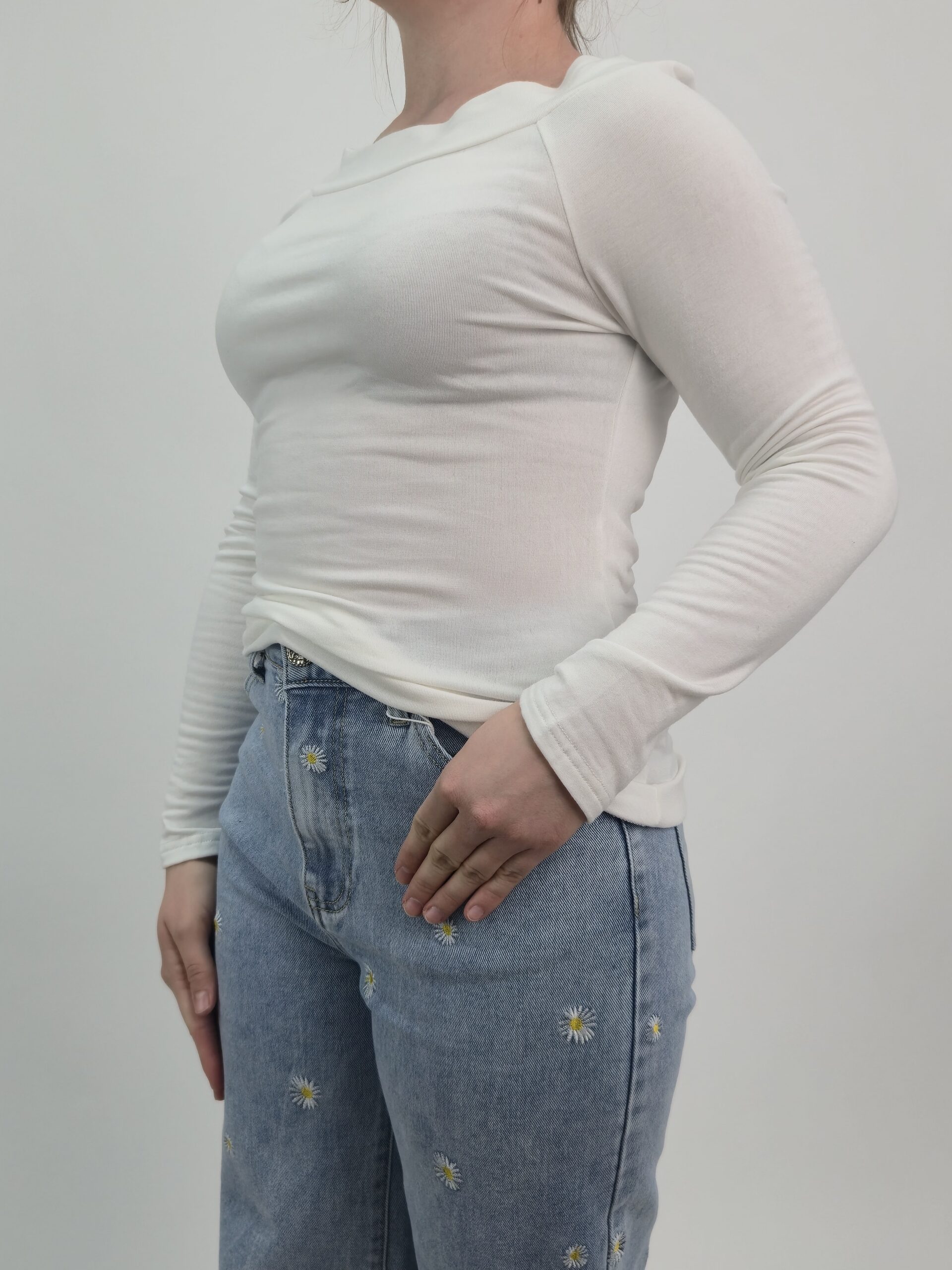 Wiskozowa Bluzka z Dekoltem Łódka – White Essential