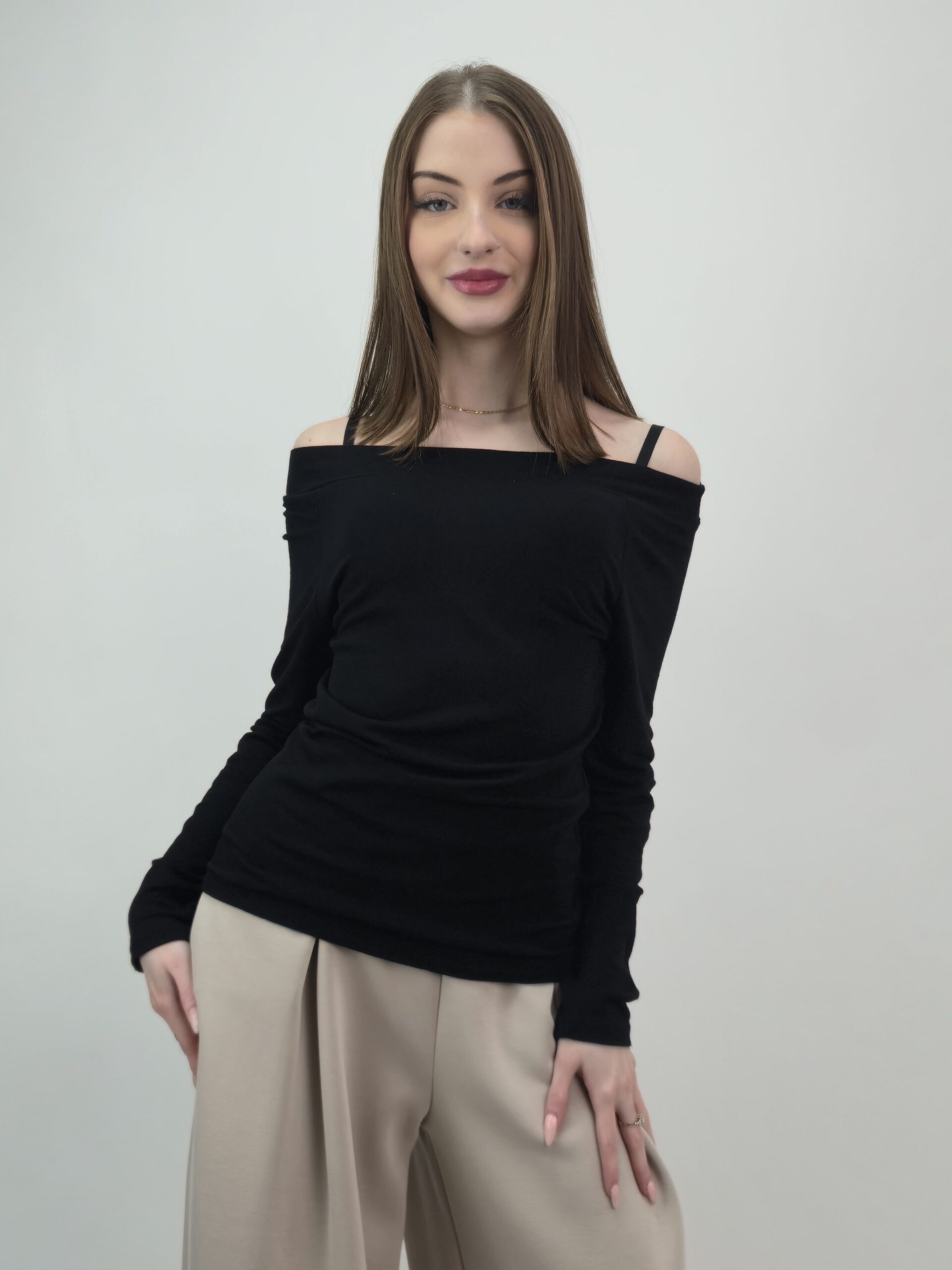 Wiskozowa Bluzka z Dekoltem Łódka – Black Essential