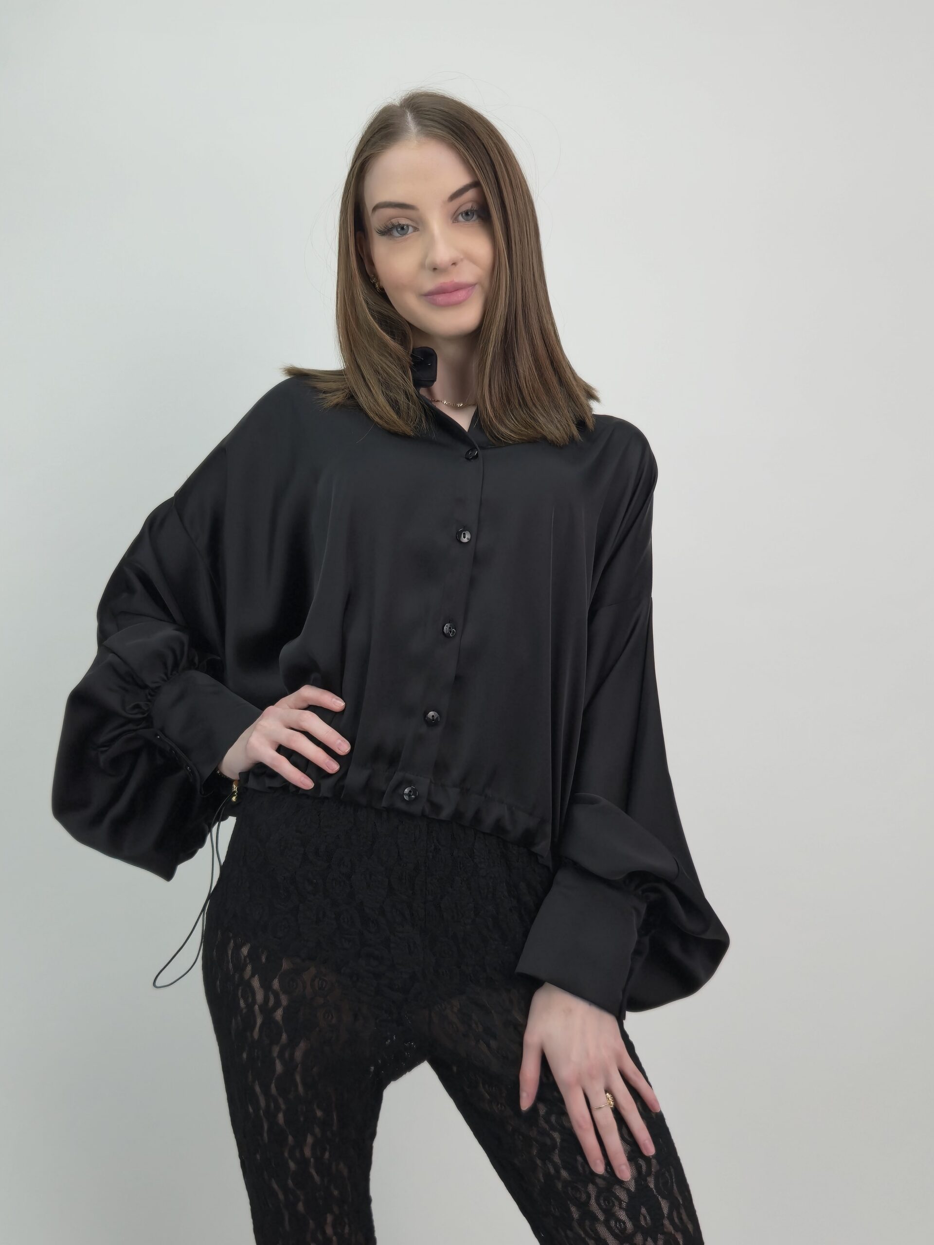 Koszula damska satynowa o Fasonie Nietoperza – Midnight Glamour