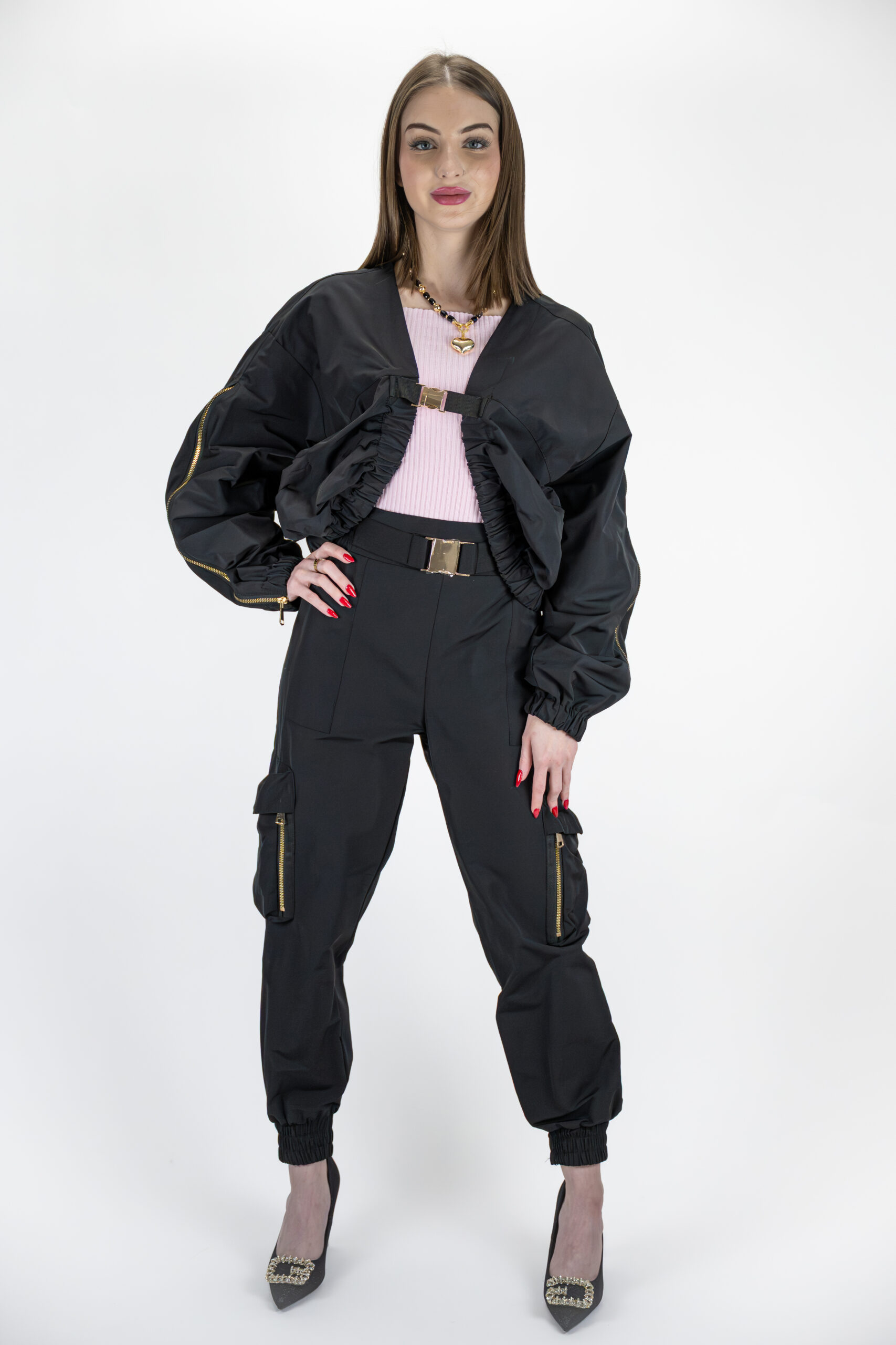 Przedstawiamy Państwu projekt, który redefiniuje pojęcie sportowej elegancji. Ta czarna bomberka to połączenie dynamicznego, miejskiego stylu z luksusowymi detalami, charakterystycznymi dla odzieży klasy premium. Idealna propozycja dla kobiet poszukujących odważnych, a zarazem wyrafinowanych elementów garderoby, które nadadzą charakteru każdej stylizacji.