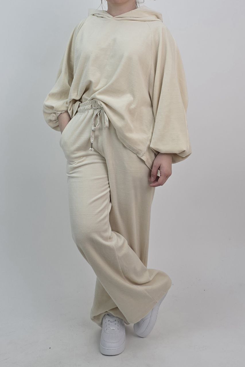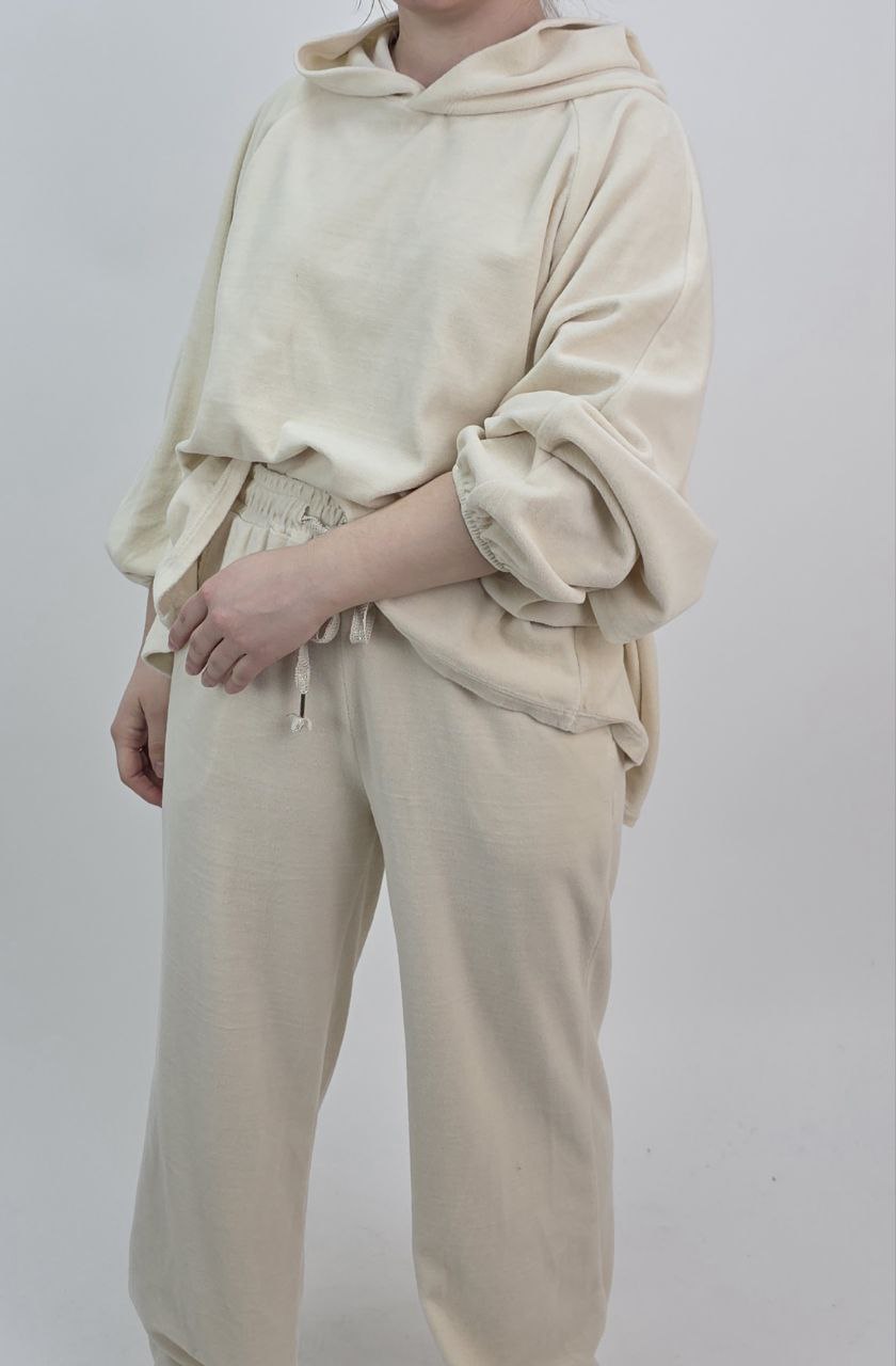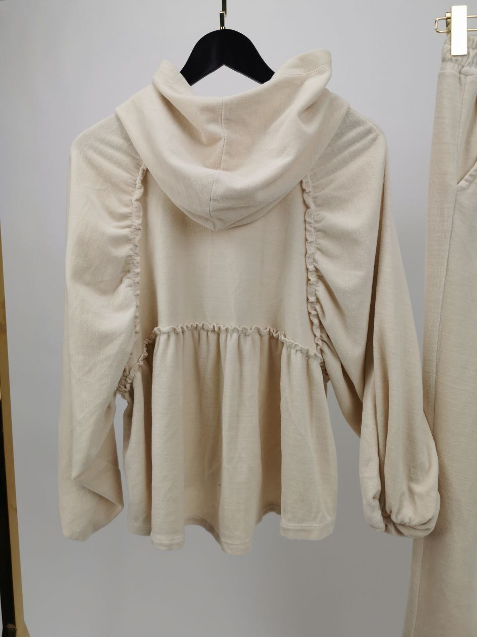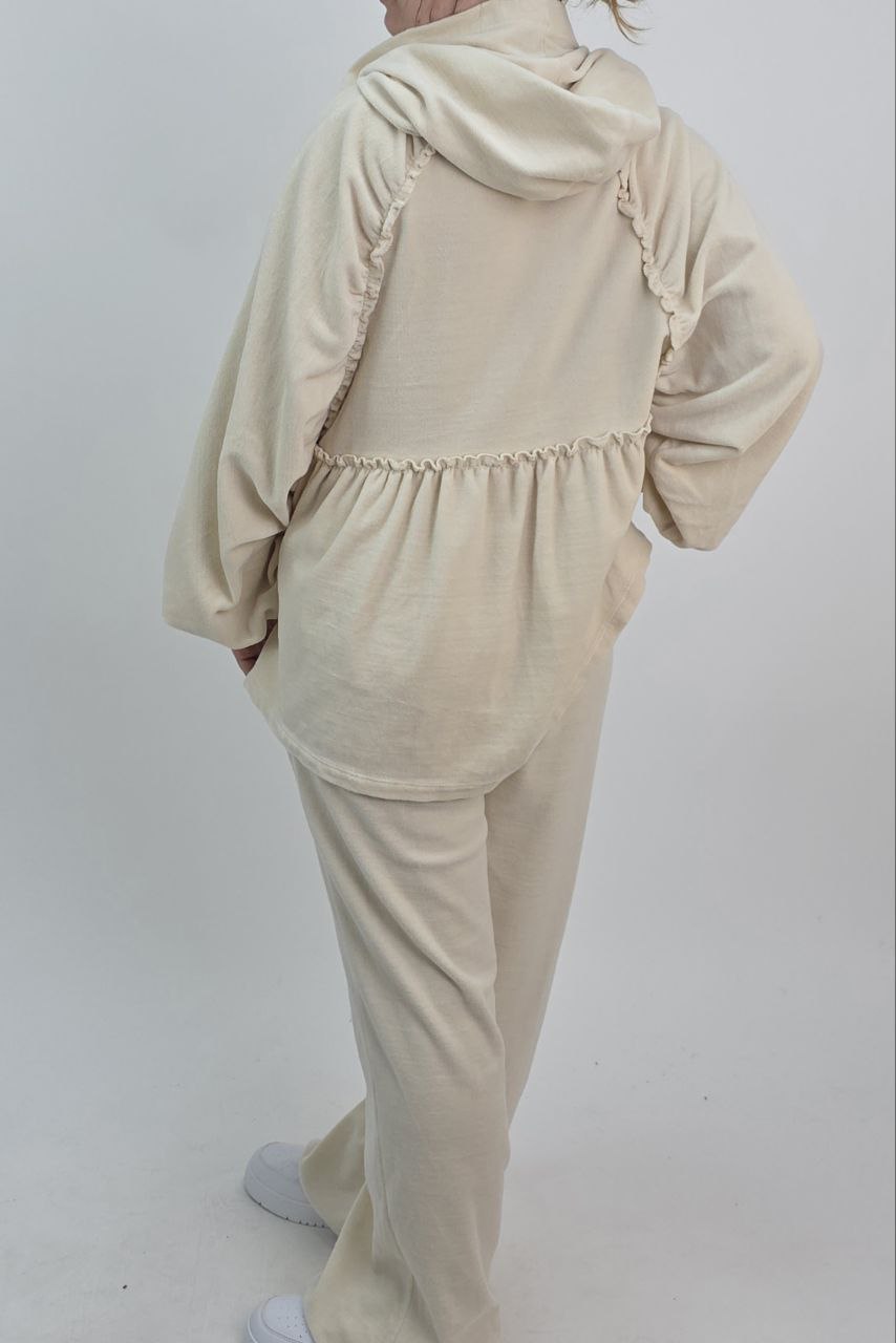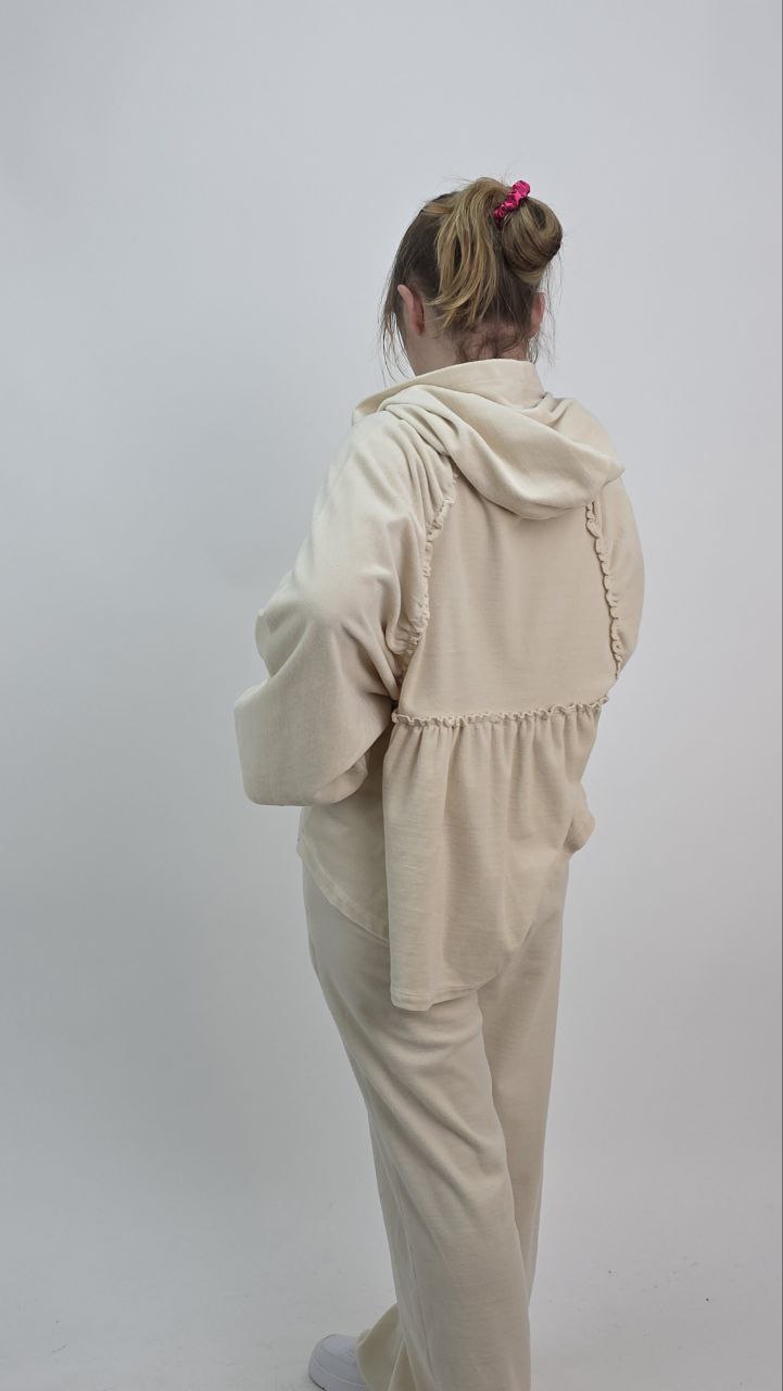 Welurowy Komplet Dresowy z Falbanką – Beżowy