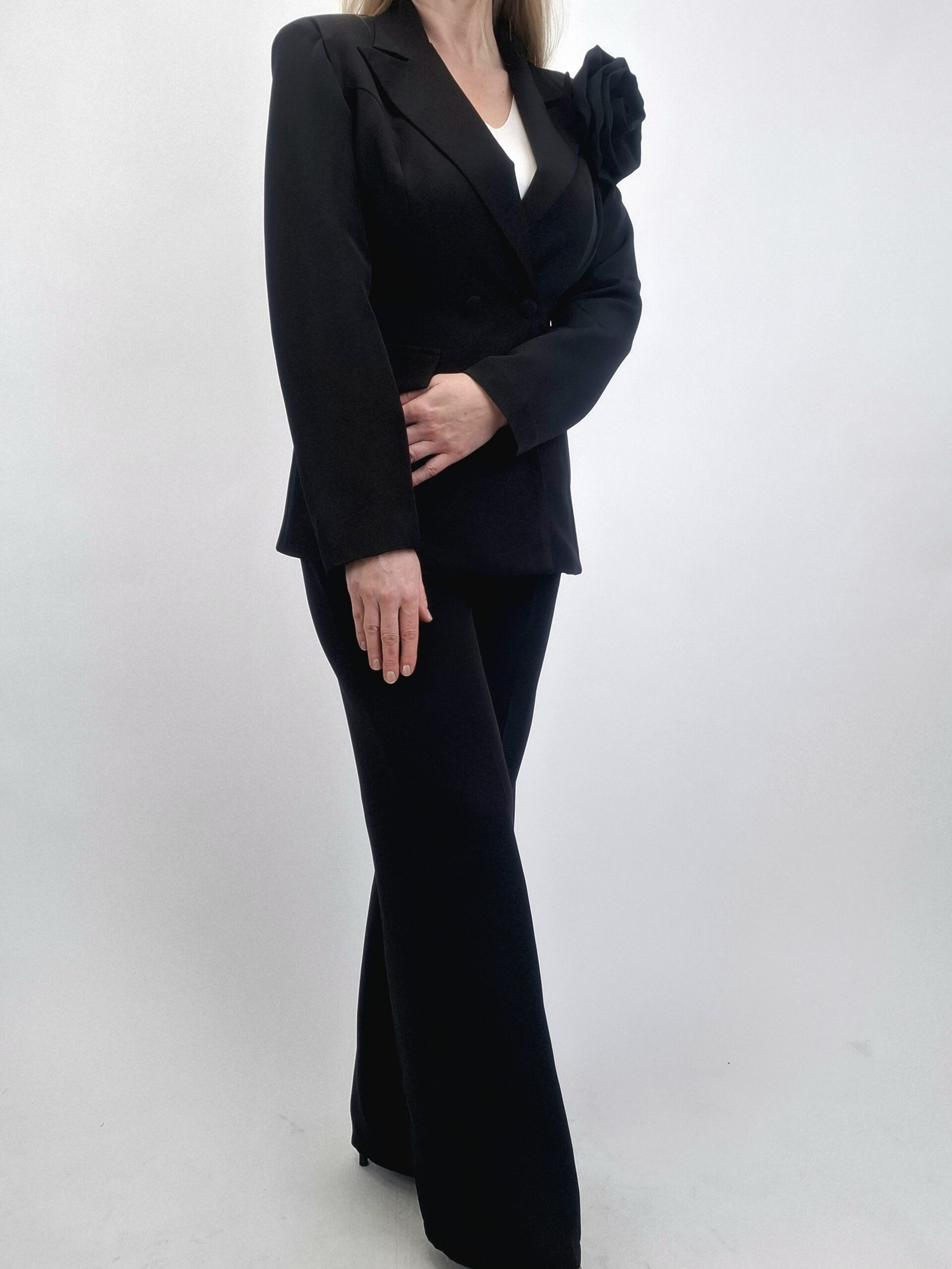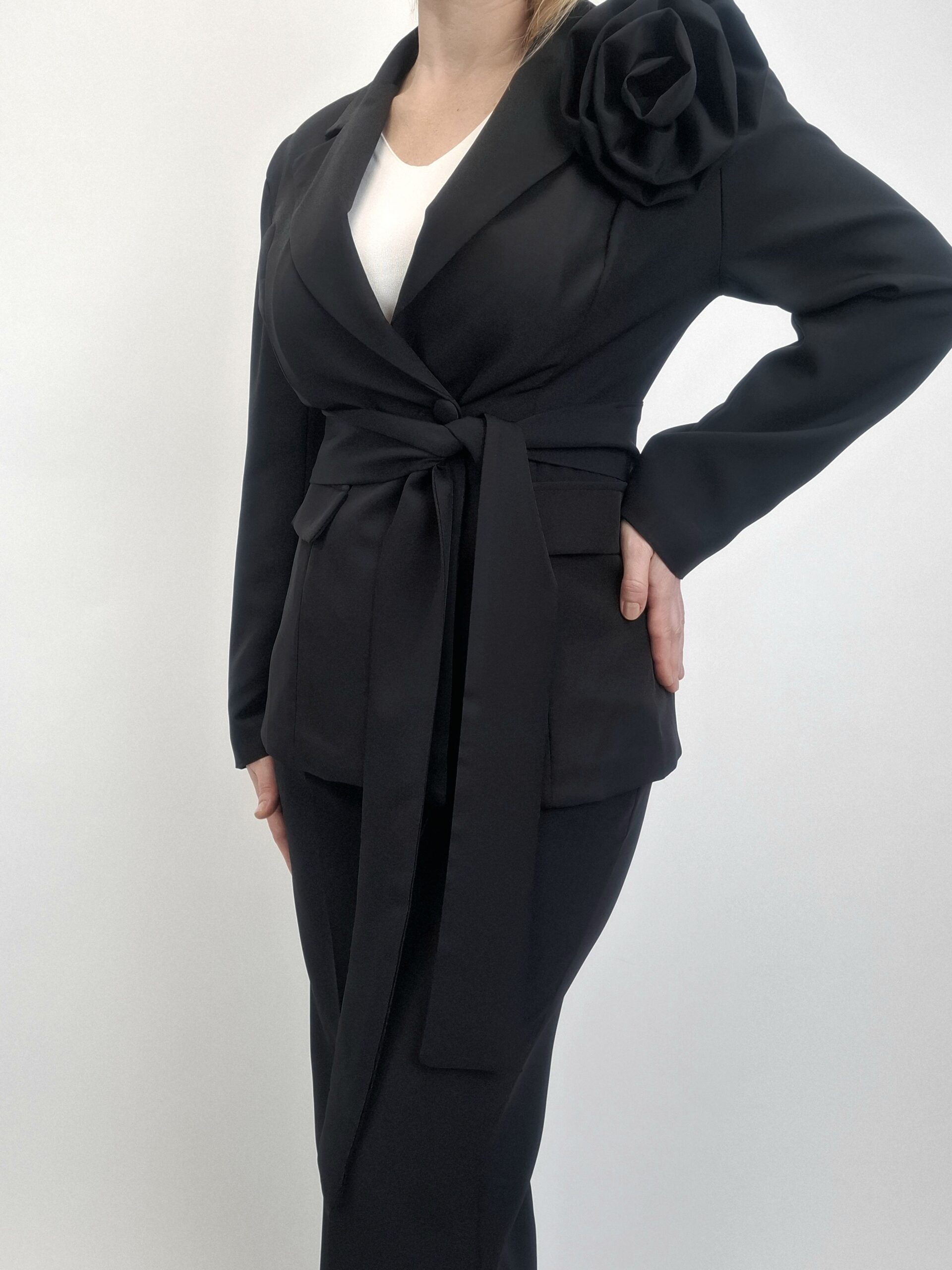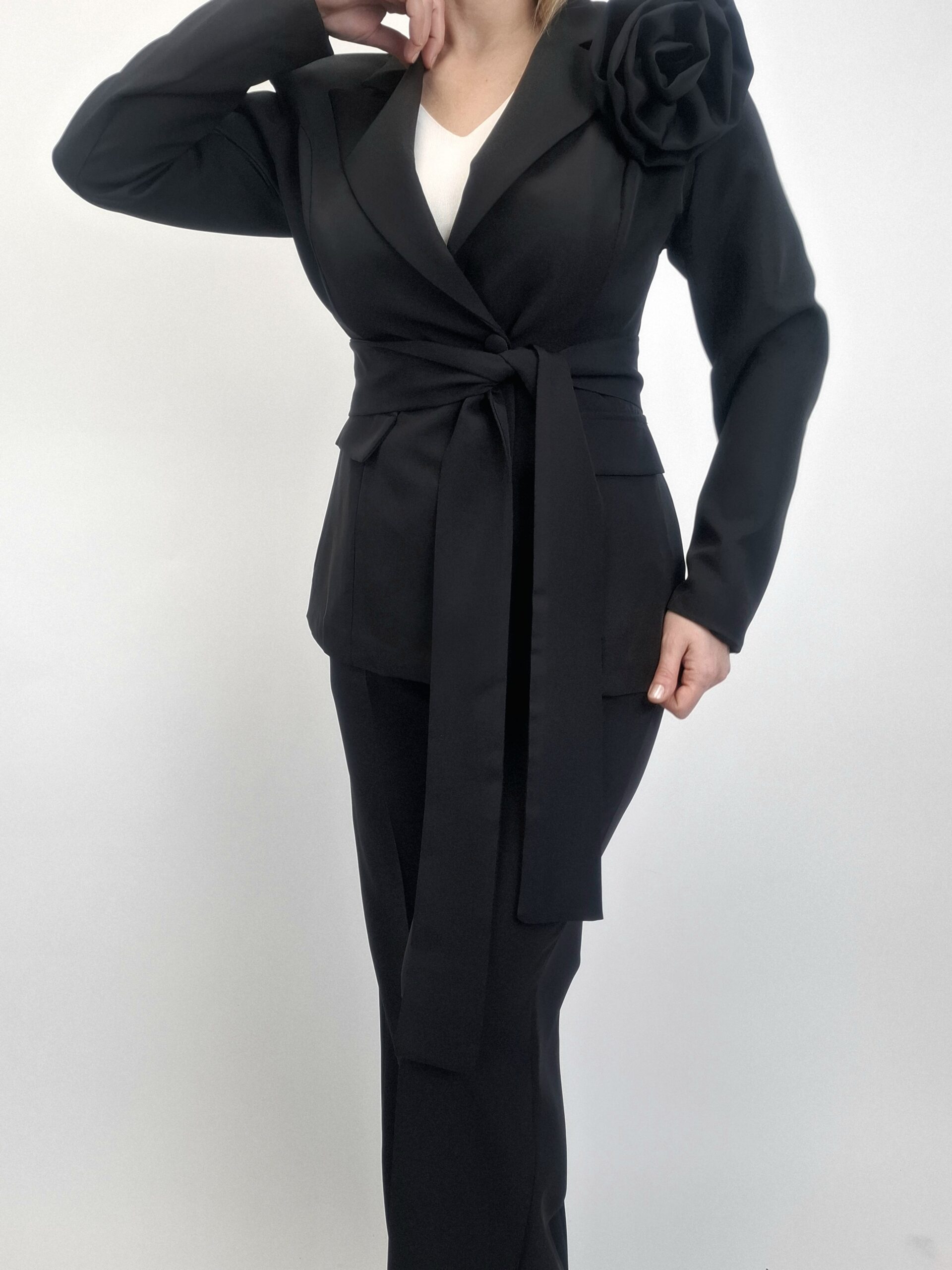 Przedstawiamy Państwu absolutną perłę nadchodzącego sezonu – elegancki komplet w odcieniu głębokiej czerni, który jest definicją klasy i wiosennego szyku. Ten dwuczęściowy zestaw został zaprojektowany z myślą o wyjątkowych wyjściach biznesowych, wieczorowych, gdzie nienaganna prezencja i wyrafinowany styl są kluczem do sukcesu.