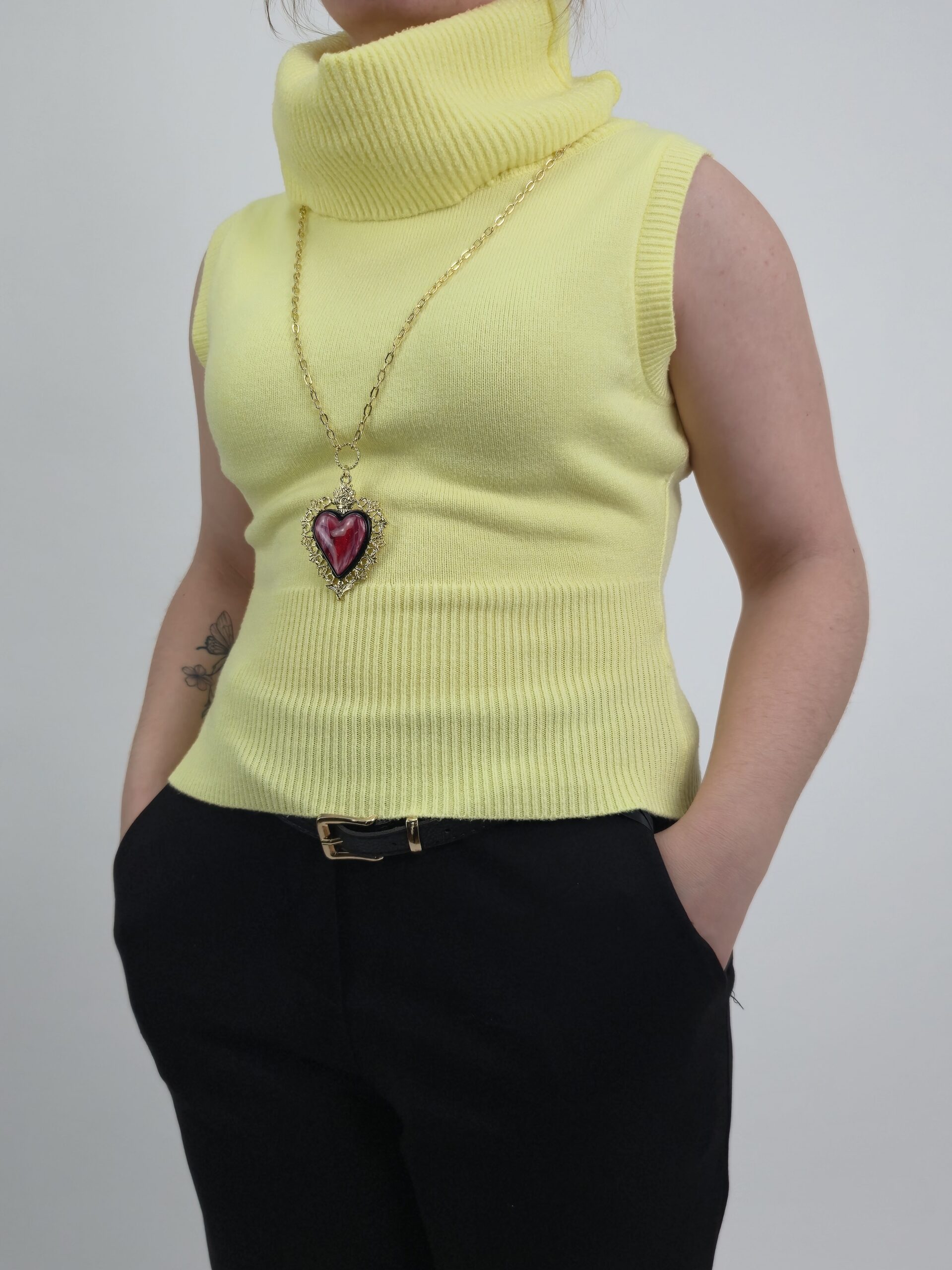 Dzianinowy Golf bez Rękawów – Słoneczny Żółty