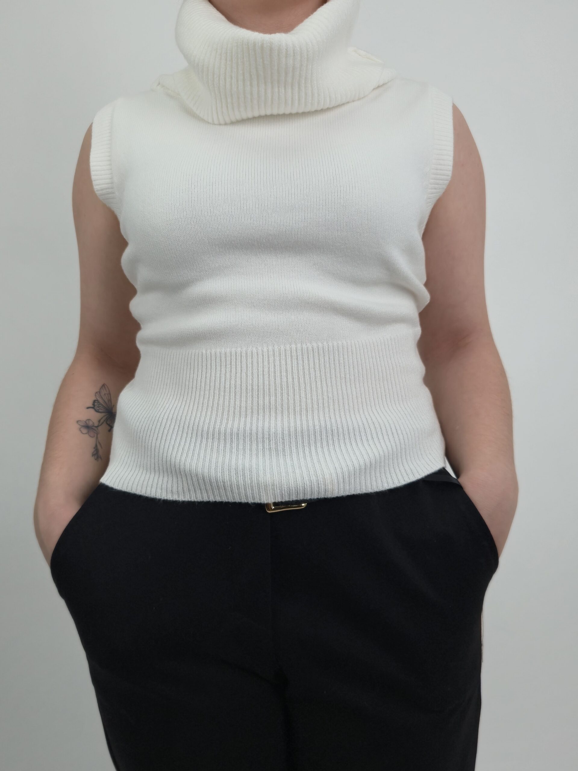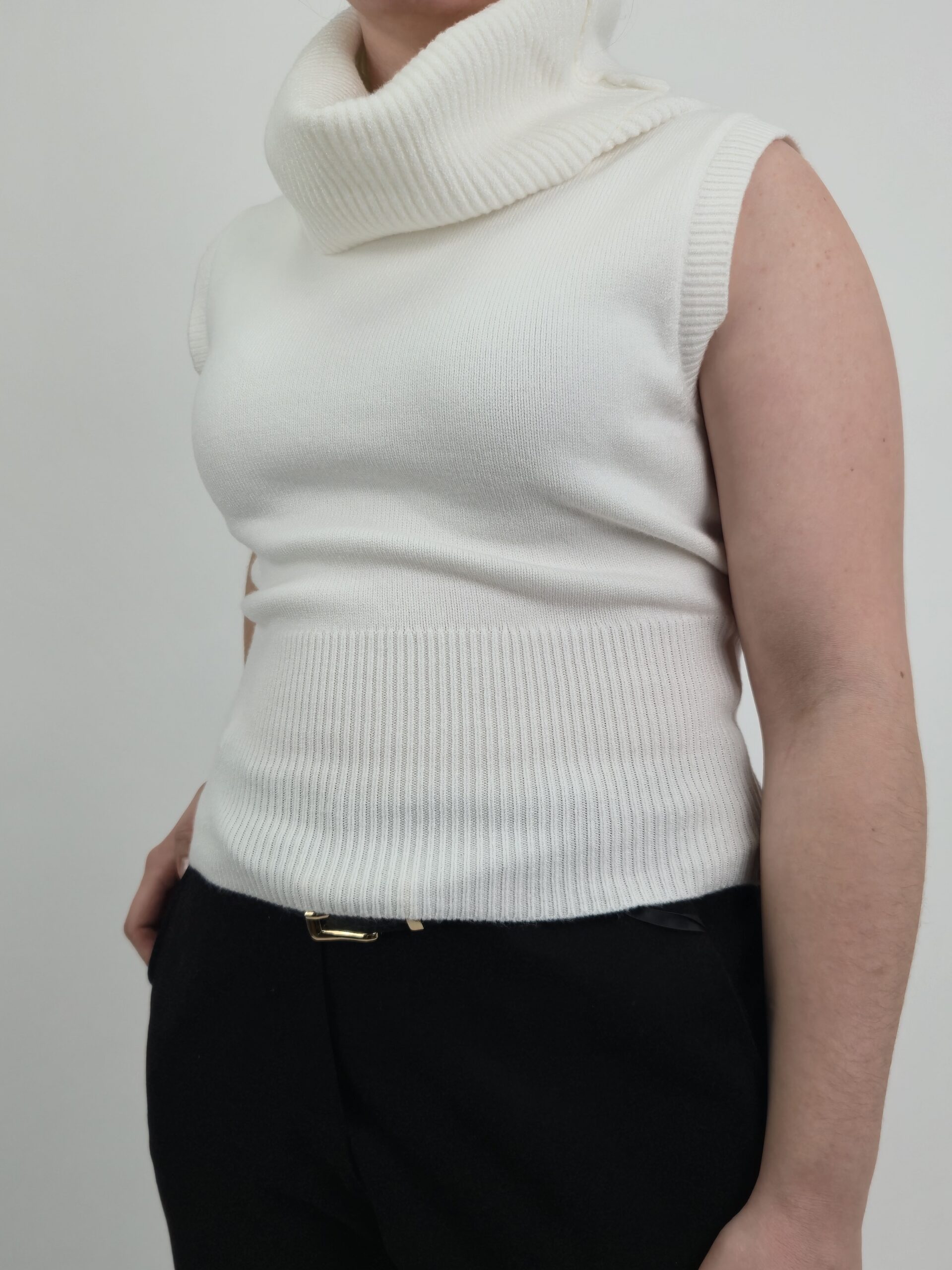 Dzianinowy Golf bez Rękawów – Śmietankowa Biel