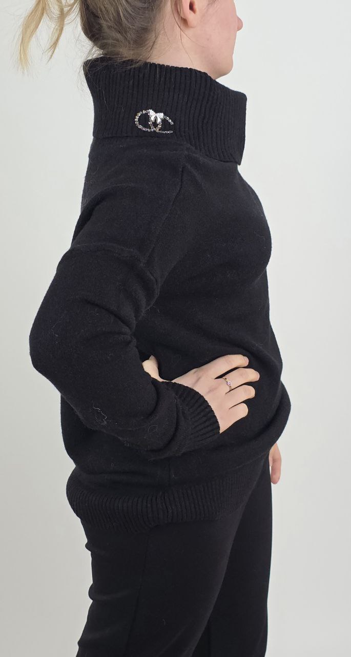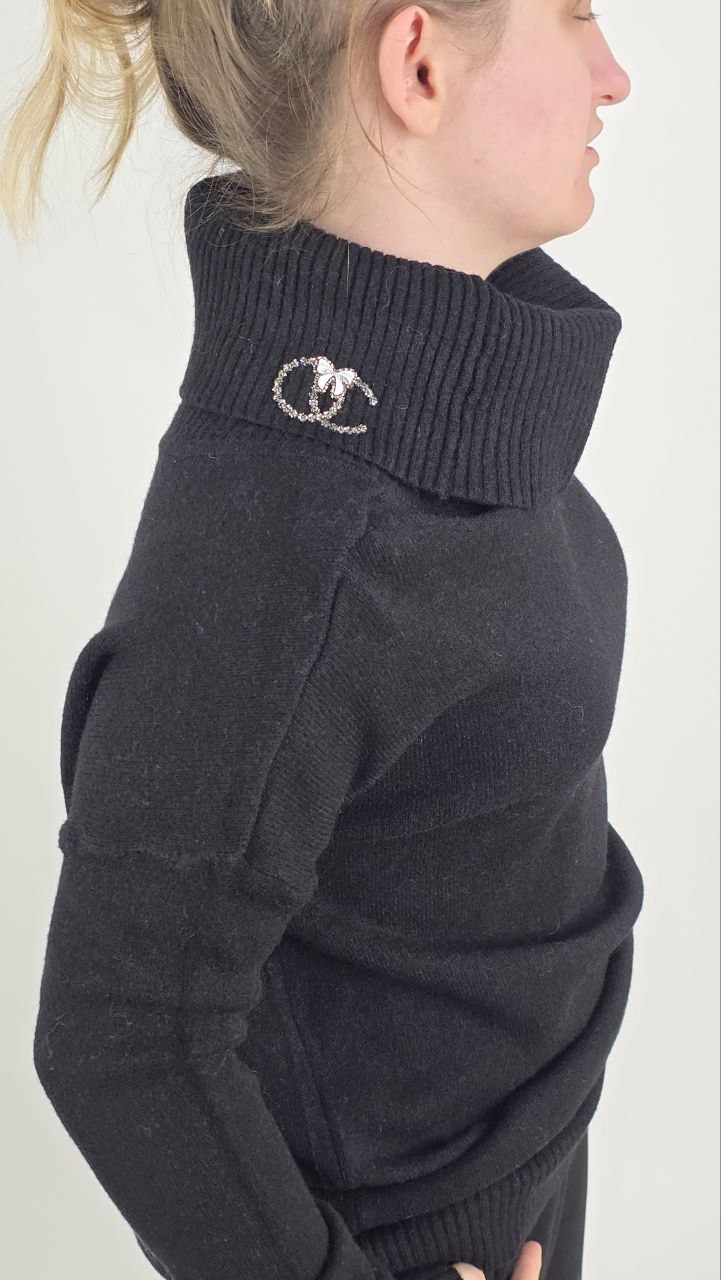 Przedstawiamy Państwu klasykę w nowoczesnym, luksusowym wydaniu. Ten czarny golf to połączenie ponadczasowego szyku z subtelnym, ozdobnym akcentem, który nadaje całości unikatowego charakteru. Idealnie sprawdzi się jako baza do wyrafinowanych stylizacji, zapewniając jednocześnie niezrównany komfort noszenia.