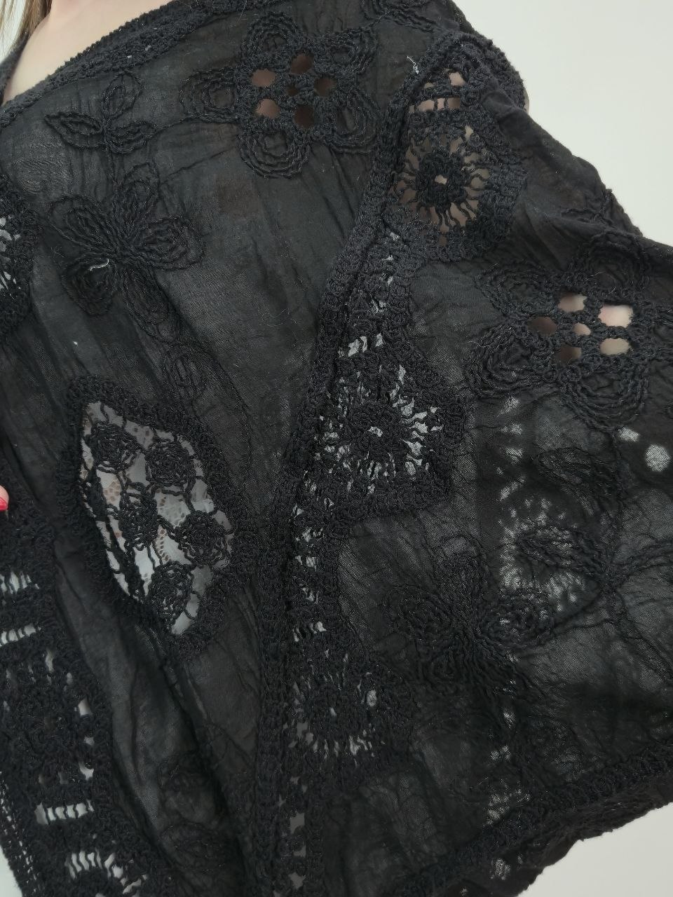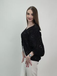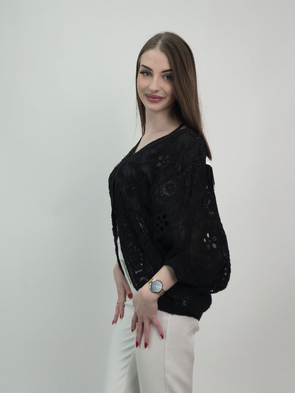 Kardigan damski haftowany w kolorze czarnym to wyjątkowa propozycja dla kobiet, które cenią romantyczny styl i ponadczasową elegancję. Przede wszystkim model zachwyca bogatymi zdobieniami oraz delikatną formą.