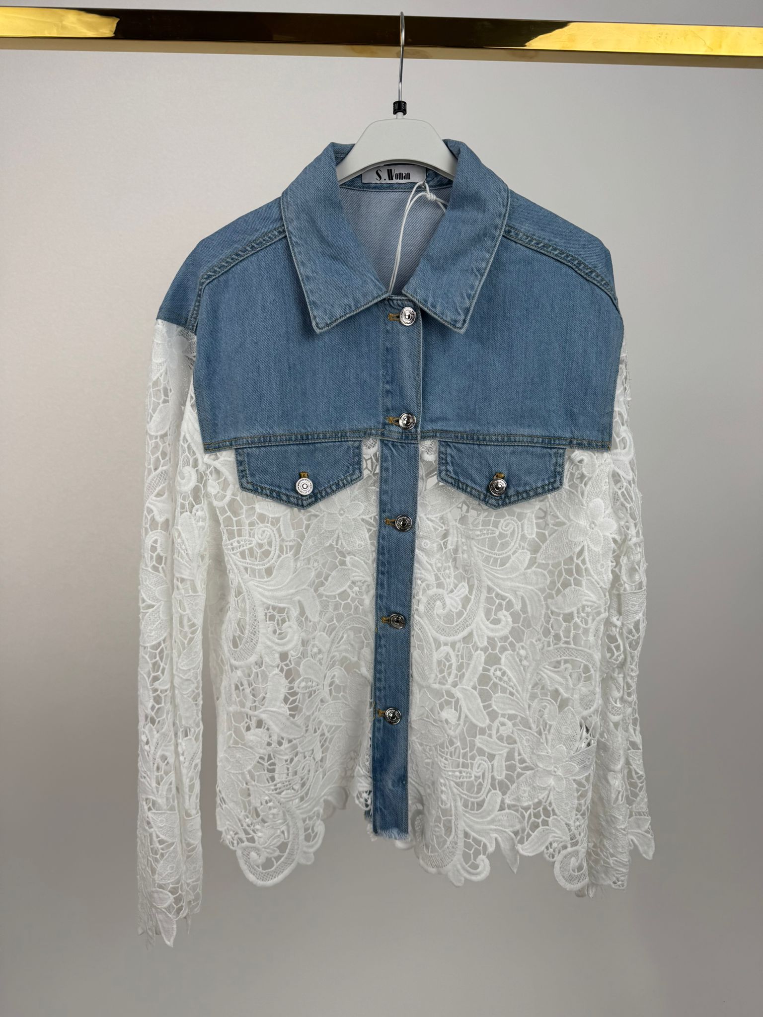 Przedstawiamy Państwu absolutny synonim wiosennej elegancji. Ta unikatowa kurtka jeansowa to harmonijne połączenie surowego denimu z subtelną, kunsztowną koronką. Jest to prawdziwy HIT nadchodzącego sezonu, który z pewnością skradnie serca miłośniczek wyrafinowanego stylu.