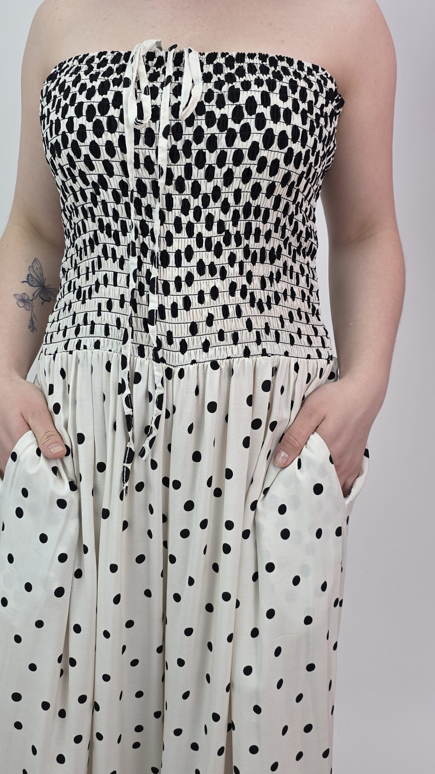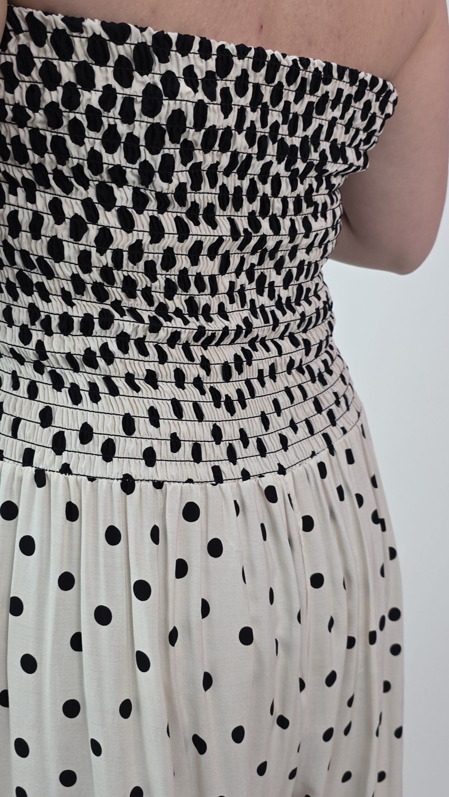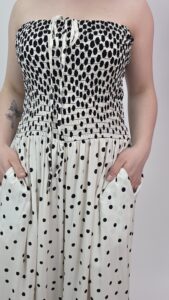 Czarno- biały kombinezon w kropki – ponadczasowy styl na lato