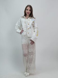 Koronkowe spodnie damskie to wyjątkowa propozycja dla kobiet, które cenią elegancję, lekkość oraz wyrafinowane detale. Delikatna, ażurowa tkanina o bogatym, ornamentalnym wzorze tworzy efekt subtelnej głębi i przyciąga spojrzenia.