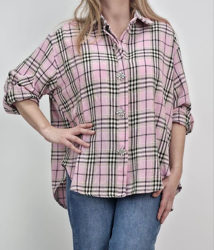 Bawełniana Koszula w Różową Kratę – Candy Pink