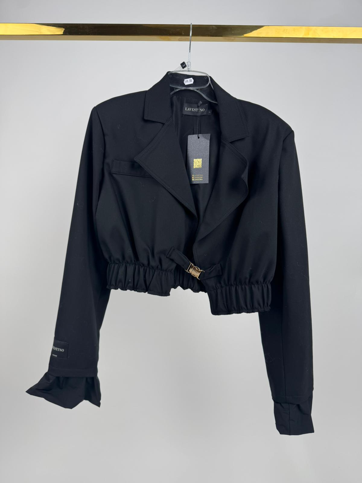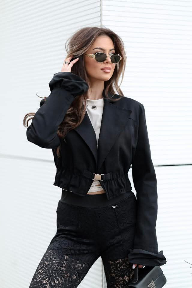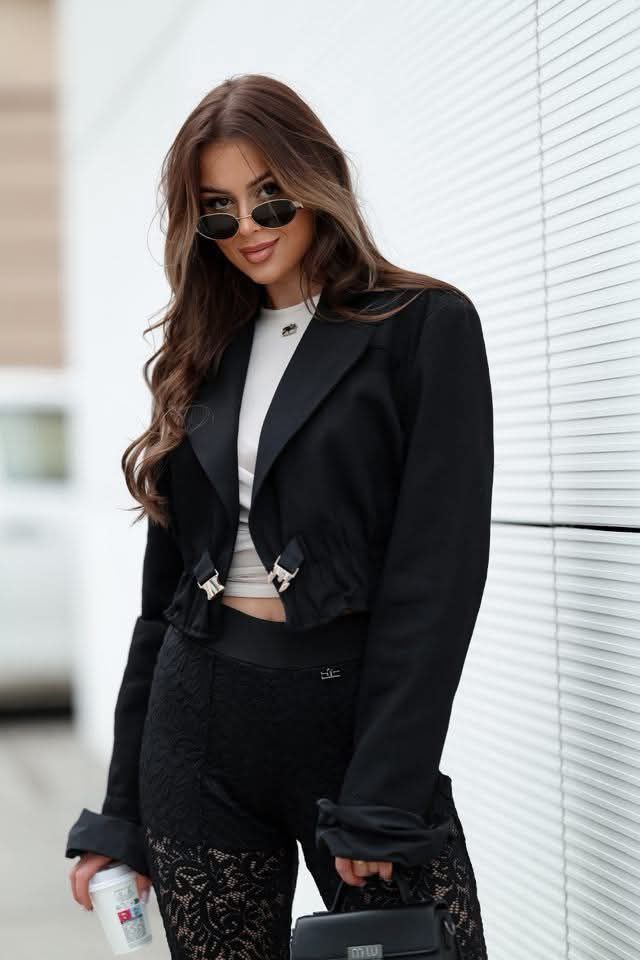 Przedstawiamy Państwu niezwykle stylową kurtkę wierzchnią, która redefiniuje pojęcie nowoczesnej elegancji. Ten model to idealne połączenie wyrafinowanego krawiectwa z odważnymi, kobiecymi akcentami, tworzące efektowną całość na nadchodzący sezon.