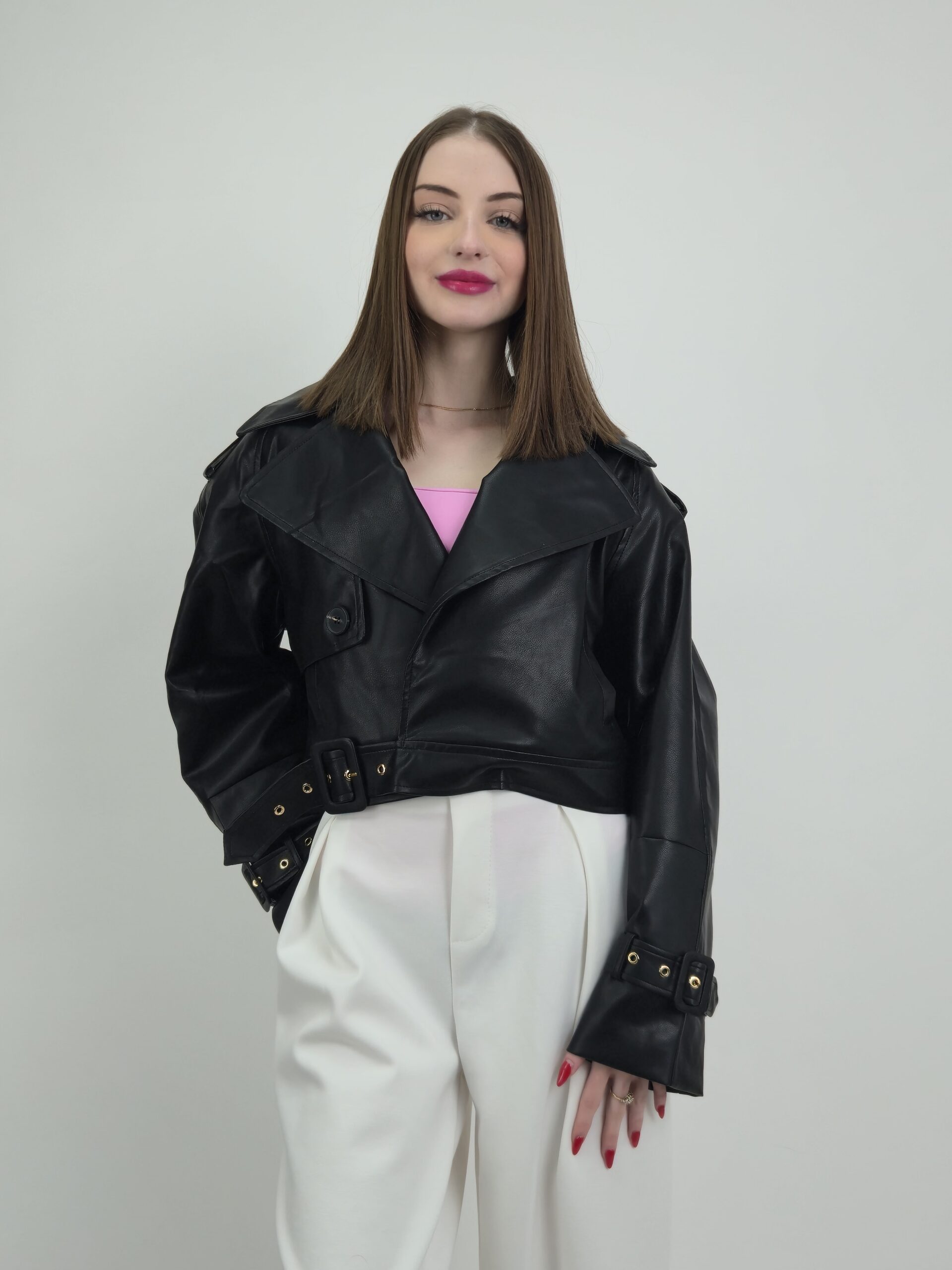 Ta czarna ramoneska damska to nowoczesna interpretacja klasycznego fasonu. Uniwersalny kolor sprawia, że model pasuje do każdej stylizacji, a jednocześnie podkreśla elegancki i wyrazisty charakter.