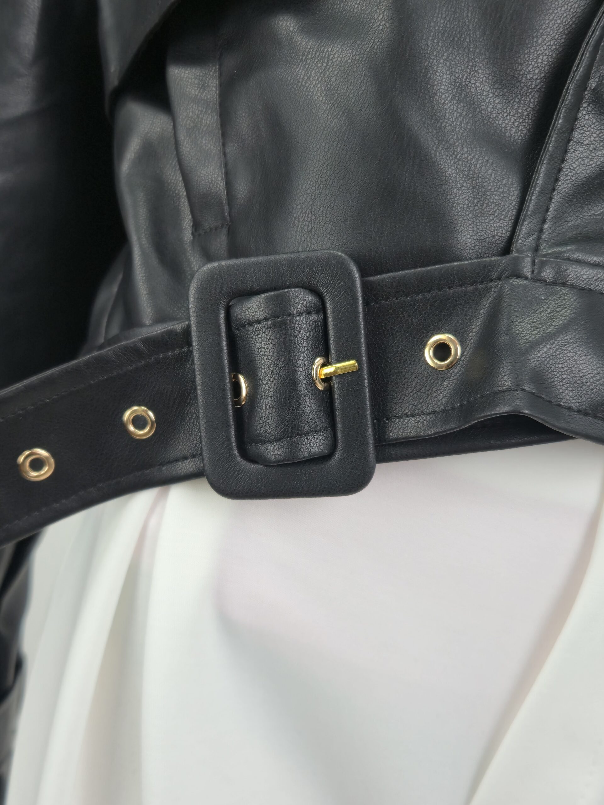 Model wykonano z wysokiej jakości eko skóry z dodatkiem wiskozy, dzięki czemu materiał jest miękki i przyjemny w dotyku. Jednocześnie zachowuje trwałość i dobrze układa się na sylwetce.