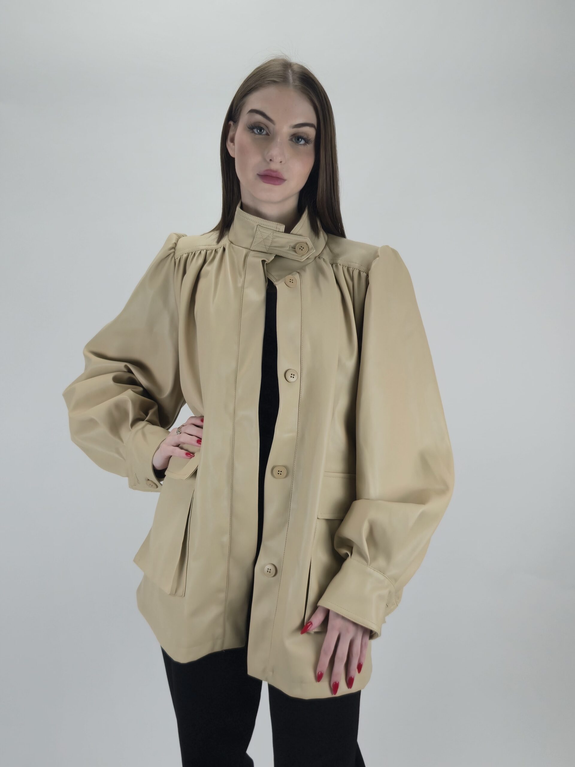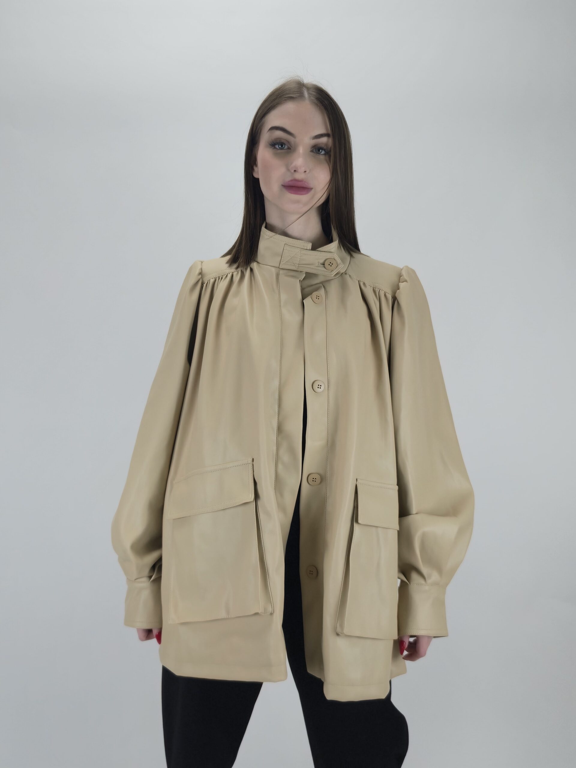 Beżowa kurtka z eko skóry – subtelność i nowoczesny styl