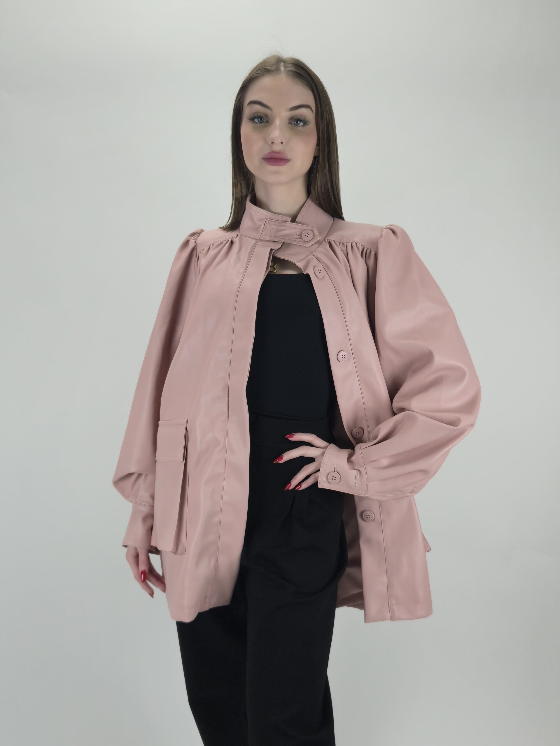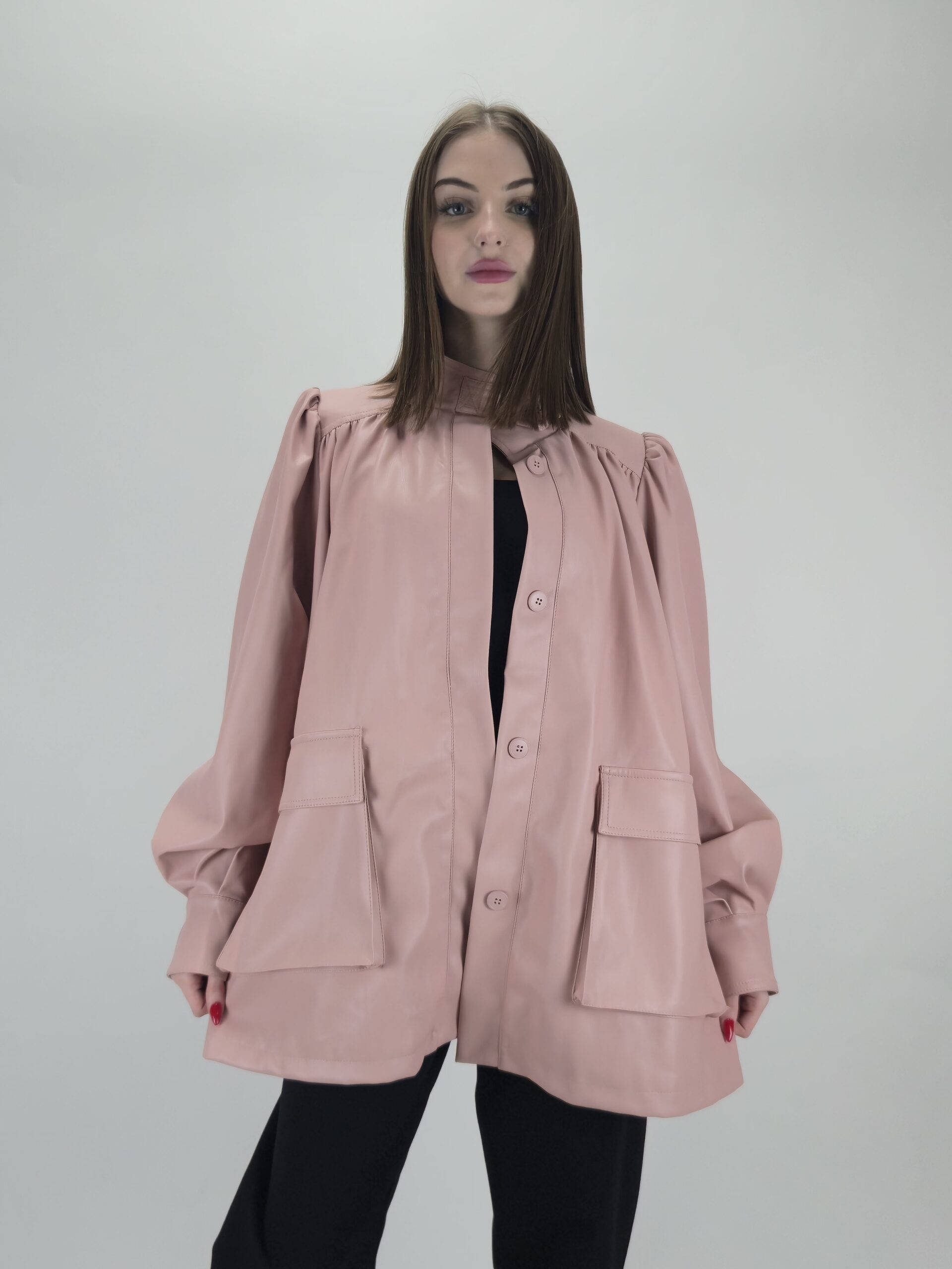 Kurtka z eko skóry pudrowy róż – kobiecość i nowoczesny styl