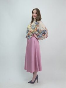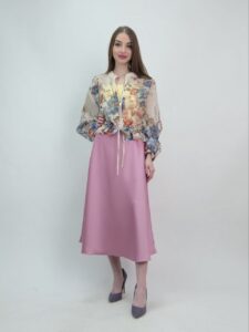 Dodatkowo warto podkreślić, że satynowa spódnica midi w odcieniu pastelowego różu doskonale wpisuje się w aktualne trendy modowe. Coraz częściej pojawia się w stylizacjach inspirowanych minimalizmem oraz kobiecą elegancją, dlatego stanowi świetną bazę do budowania nowoczesnej garderoby.