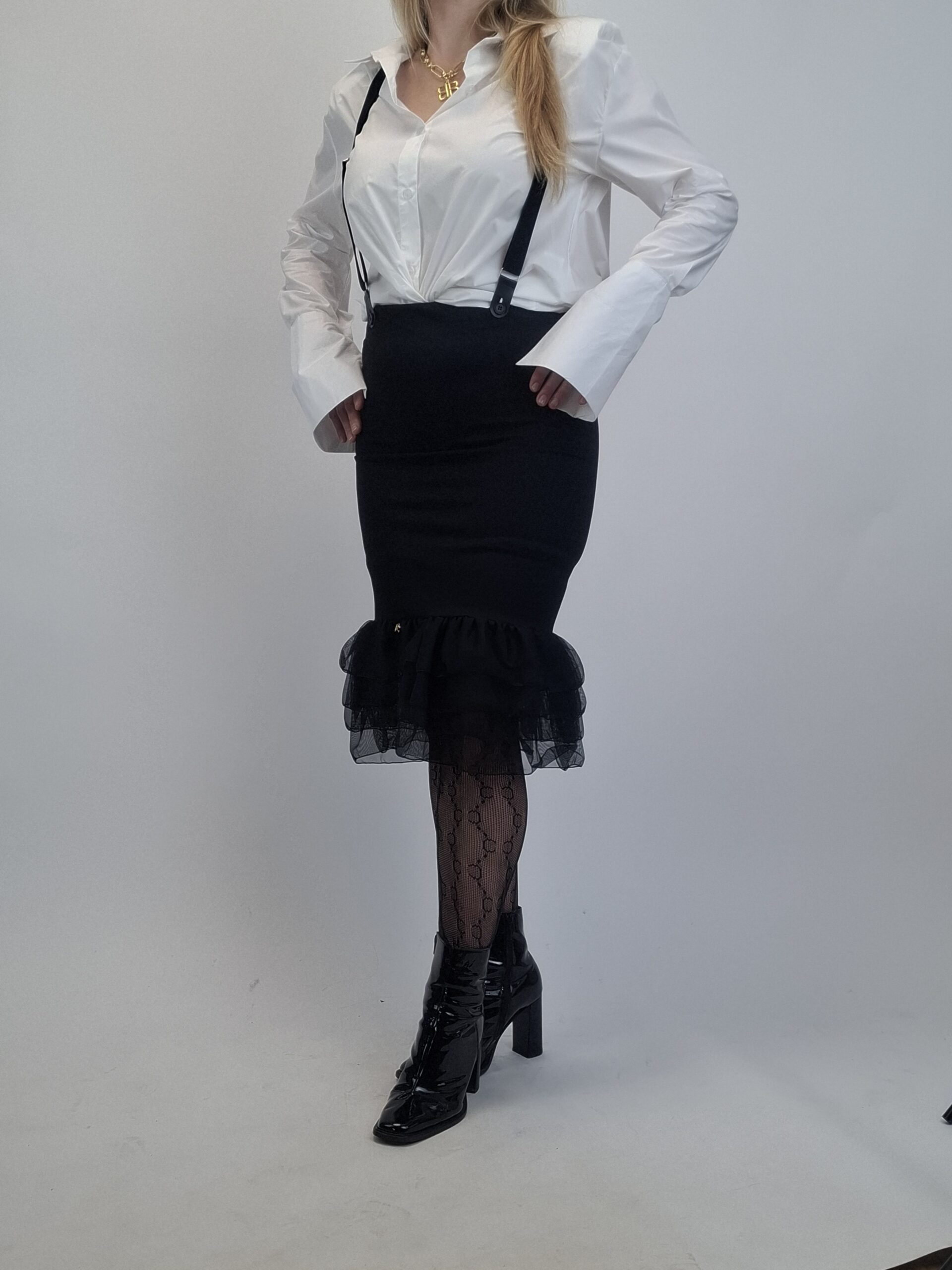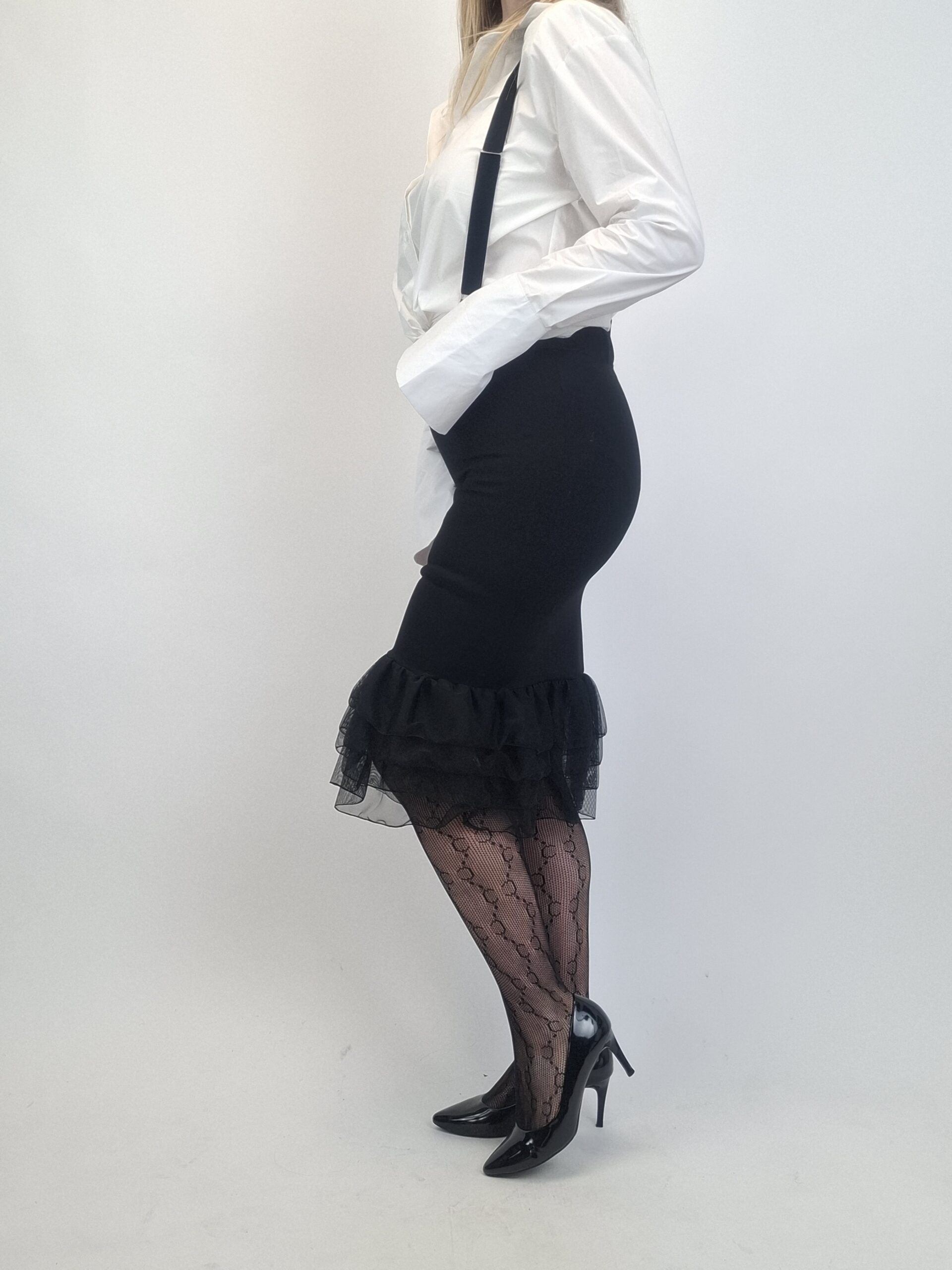 Ołówkowa Spódnica z Szelkami i Falbanką