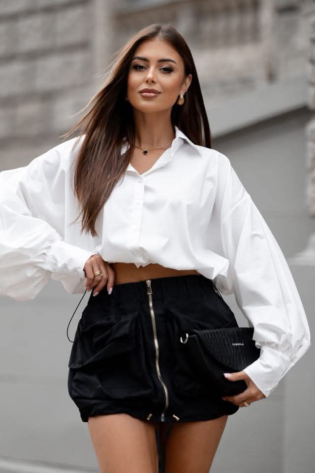 Nowoczesna Forma Cargo: Duże, efektowne kieszenie na przodzie oraz ozdobny, wyrazisty zamek nadają całości odważnego i zdecydowanego charakteru.