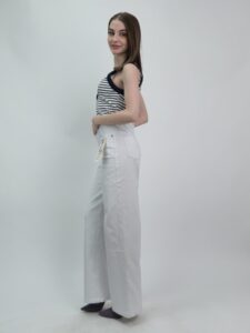 Biel to kolor niezwykle uniwersalny, dlatego spodnie możesz nosić na wiele sposobów. Z jednej strony świetnie wyglądają w casualowych zestawach z T-shirtem i sneakersami. Z drugiej strony bez problemu stworzysz z nimi bardziej elegancki look, łącząc je z koszulą lub marynarką.