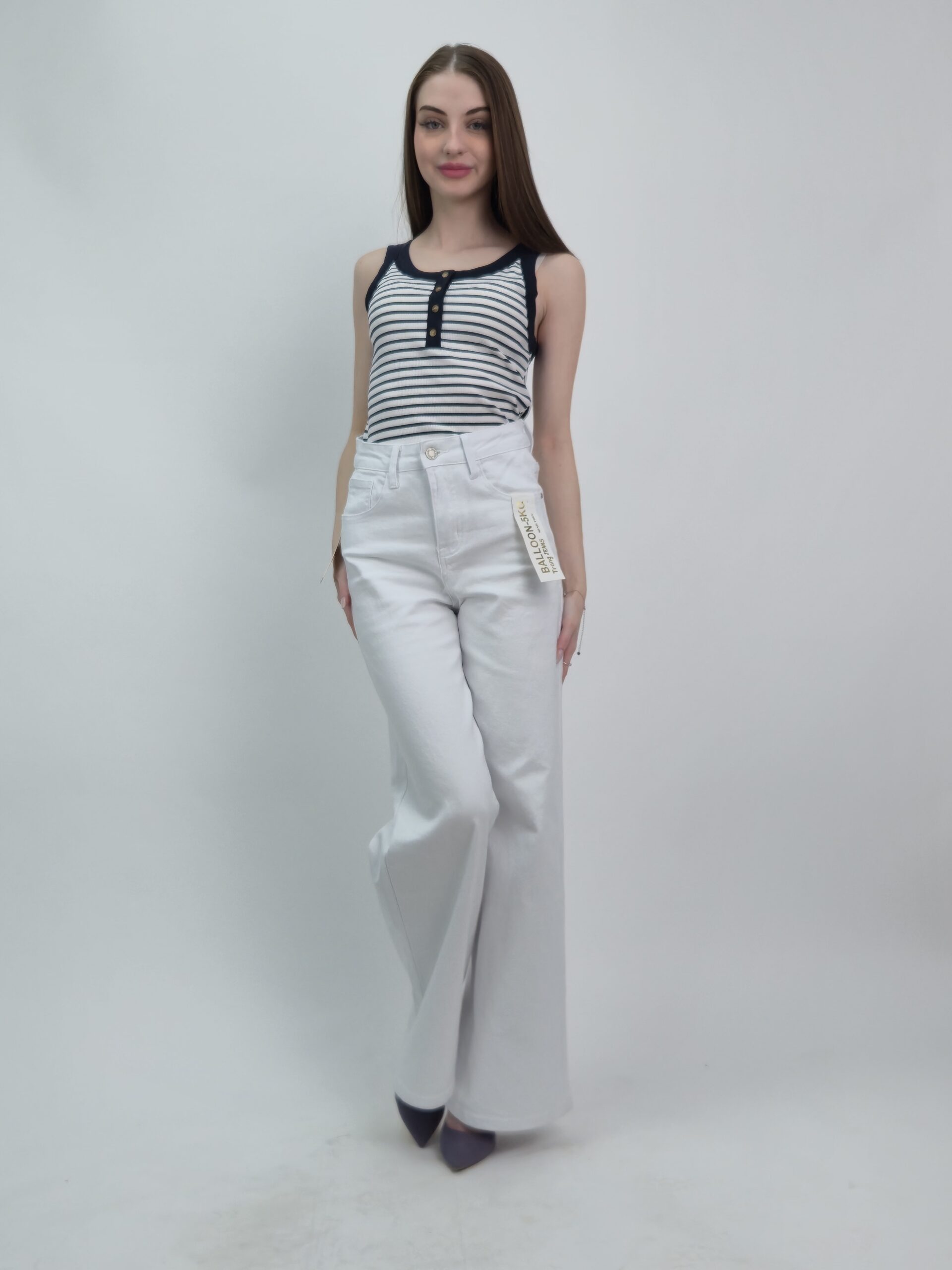Białe spodnie damskie typu balloon – styl Levi’s i efekt -5kg