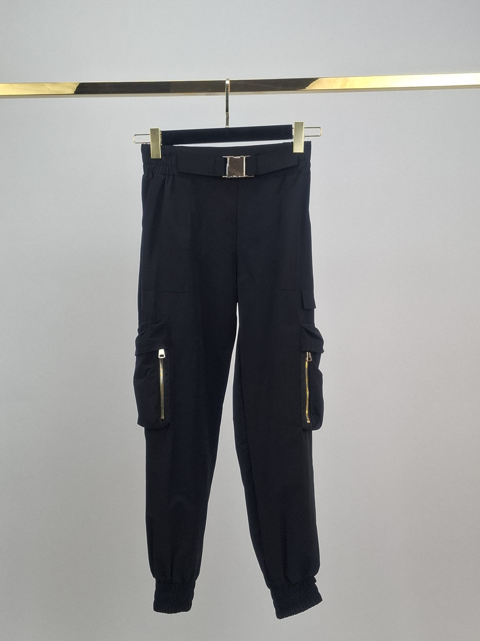 Eleganckie Spodnie Bojówki z Biżuteryjną Klamrą