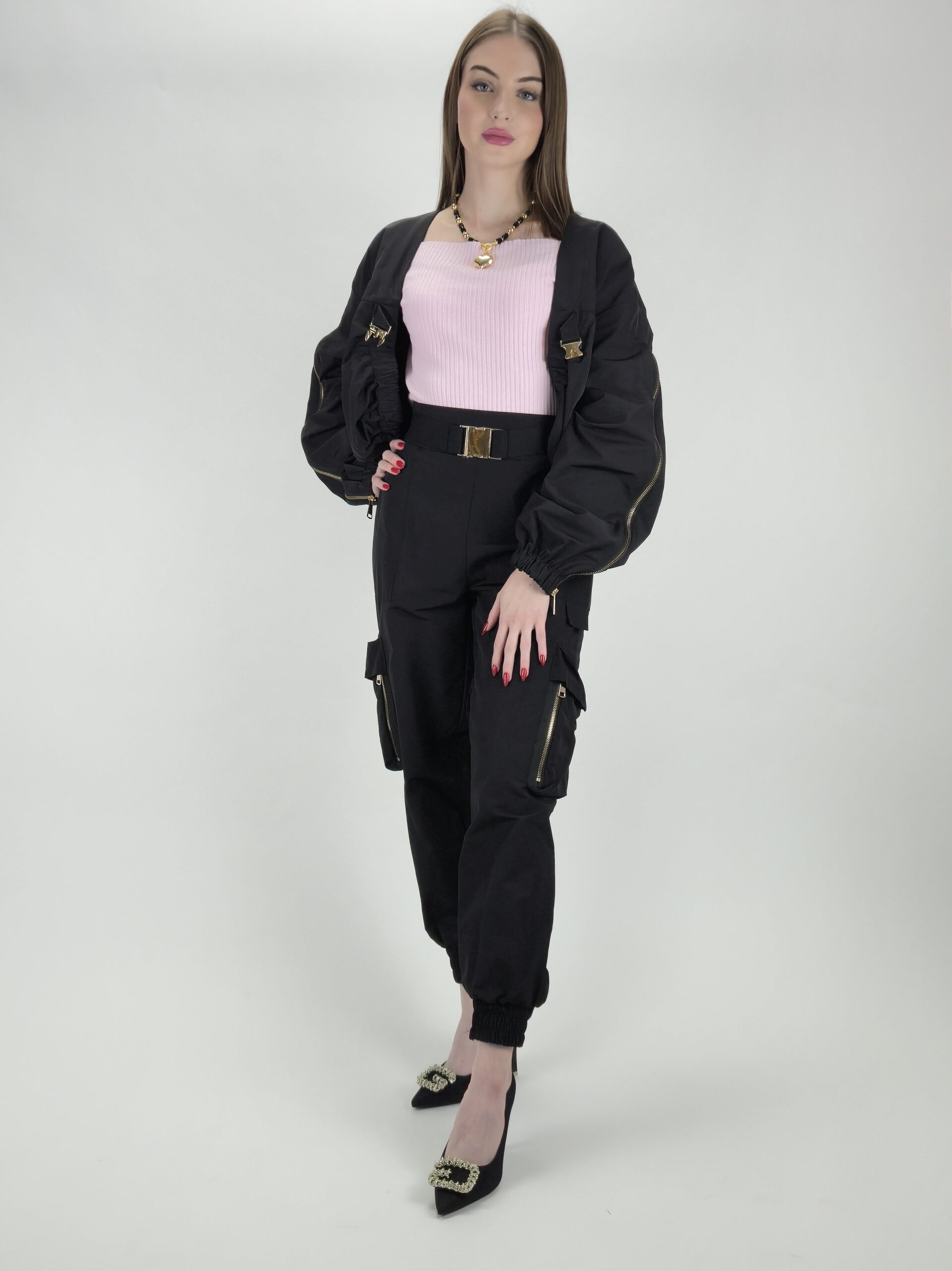 Przedstawiamy Państwu nowoczesną interpretację miejskiego stylu w wydaniu premium. Te czarne bojówki to projekt polskiej marki odzieżowej, który po mistrzowsku łączy militarny charakter z eleganckimi detalami. Idealny wybór dla kobiet, które cenią sobie wyrazisty wygląd bez kompromisów w kwestii wygody.