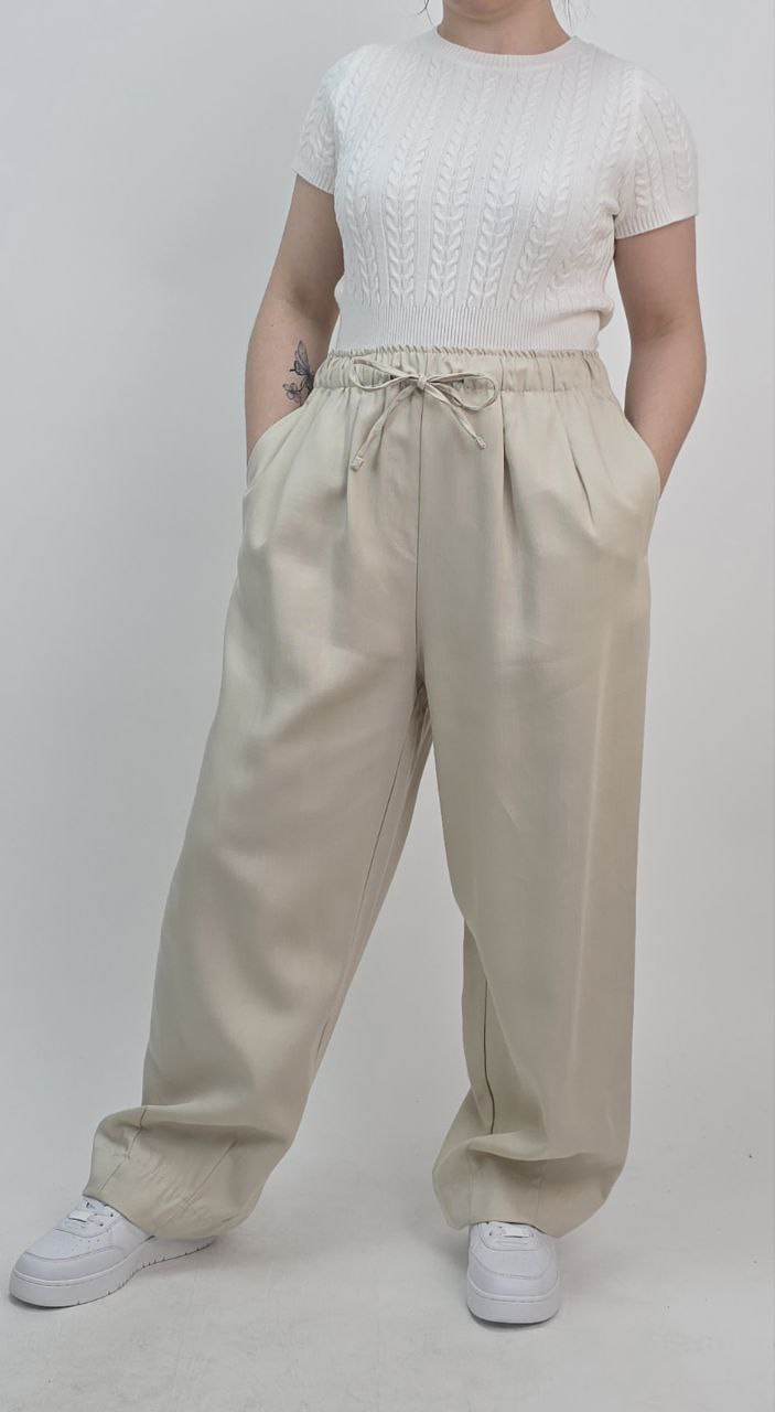 Wiosenny Must-Have: Jasnobeżowy odcień sprawia, że spodnie są niezwykle uniwersalną bazą do wielu świeżych, wiosennych stylizacji.