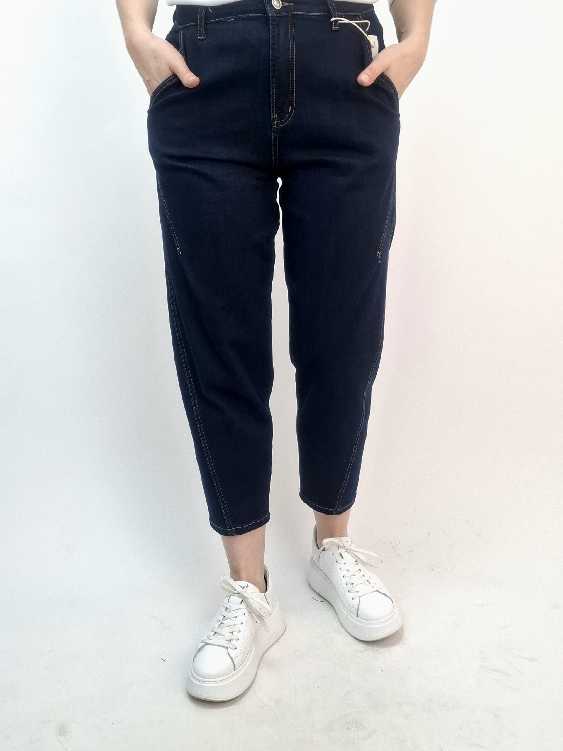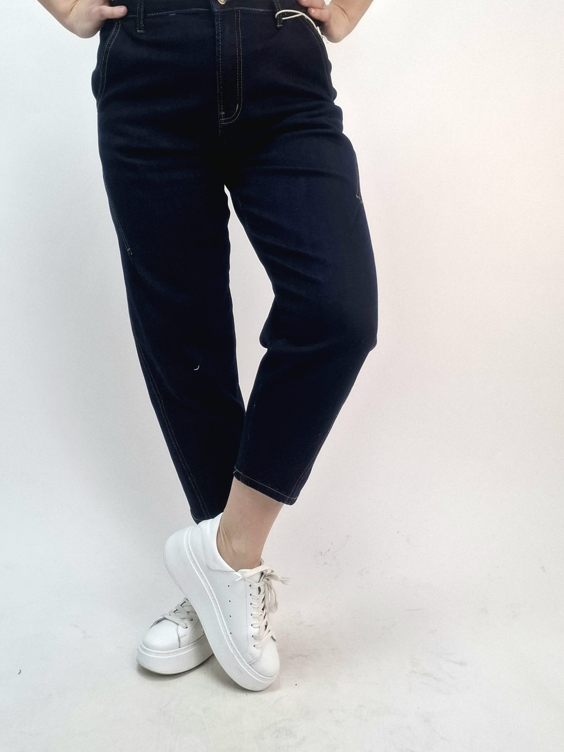 Eleganckie spodnie jeansowe w głębokim, granatowym odcieniu to model z linii premium, który zachwyca dopracowanym krojem i detalami.