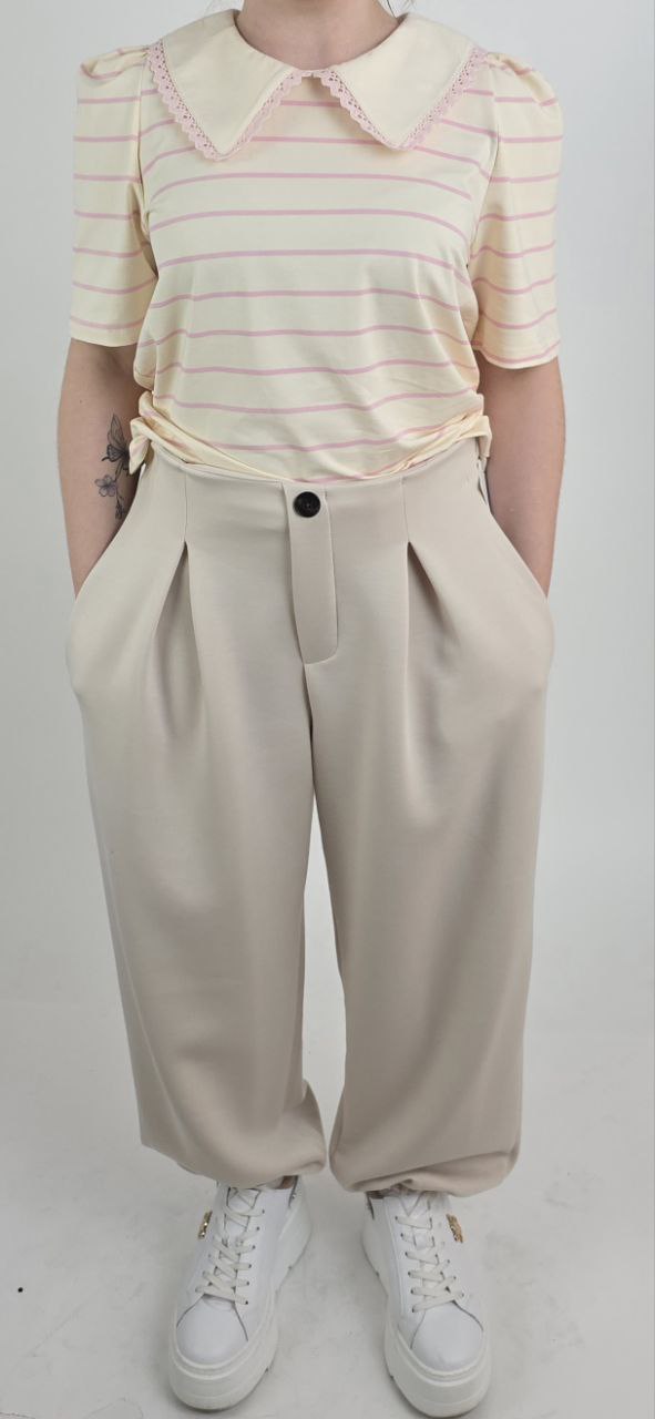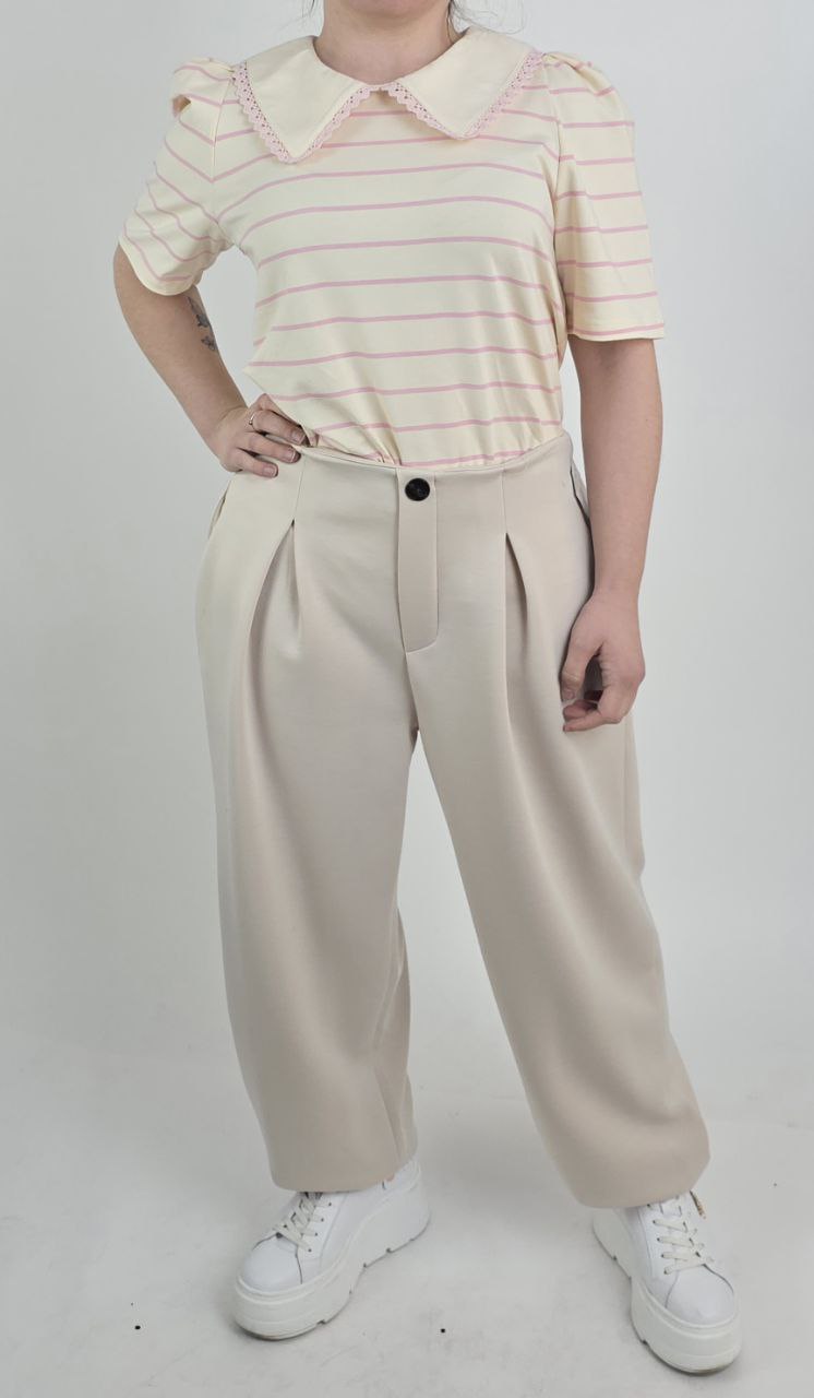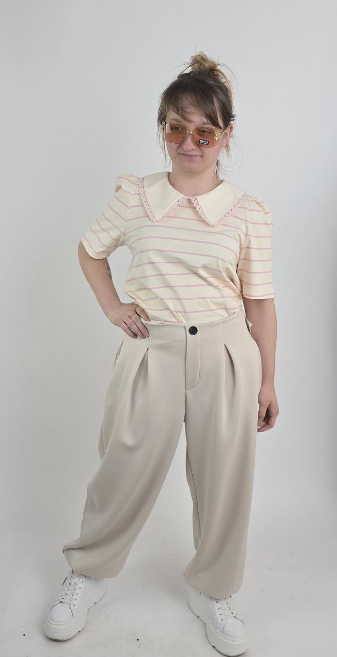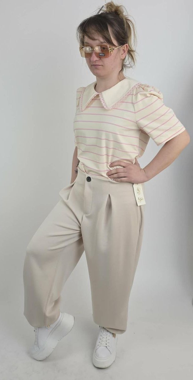 Eleganckie pumpki o wyjątkowo miękkim, „masełkowym” wykończeniu. Z przodu kontrafałda nadaje sylwetce lekkości, a elastyczna guma w pasie (z tyłu) zapewnia komfortowe dopasowanie. Nogawki wykończone ściągaczem podkreślają nowoczesny charakter modelu. Idealne na co dzień i do bardziej dopracowanych stylizacji.
