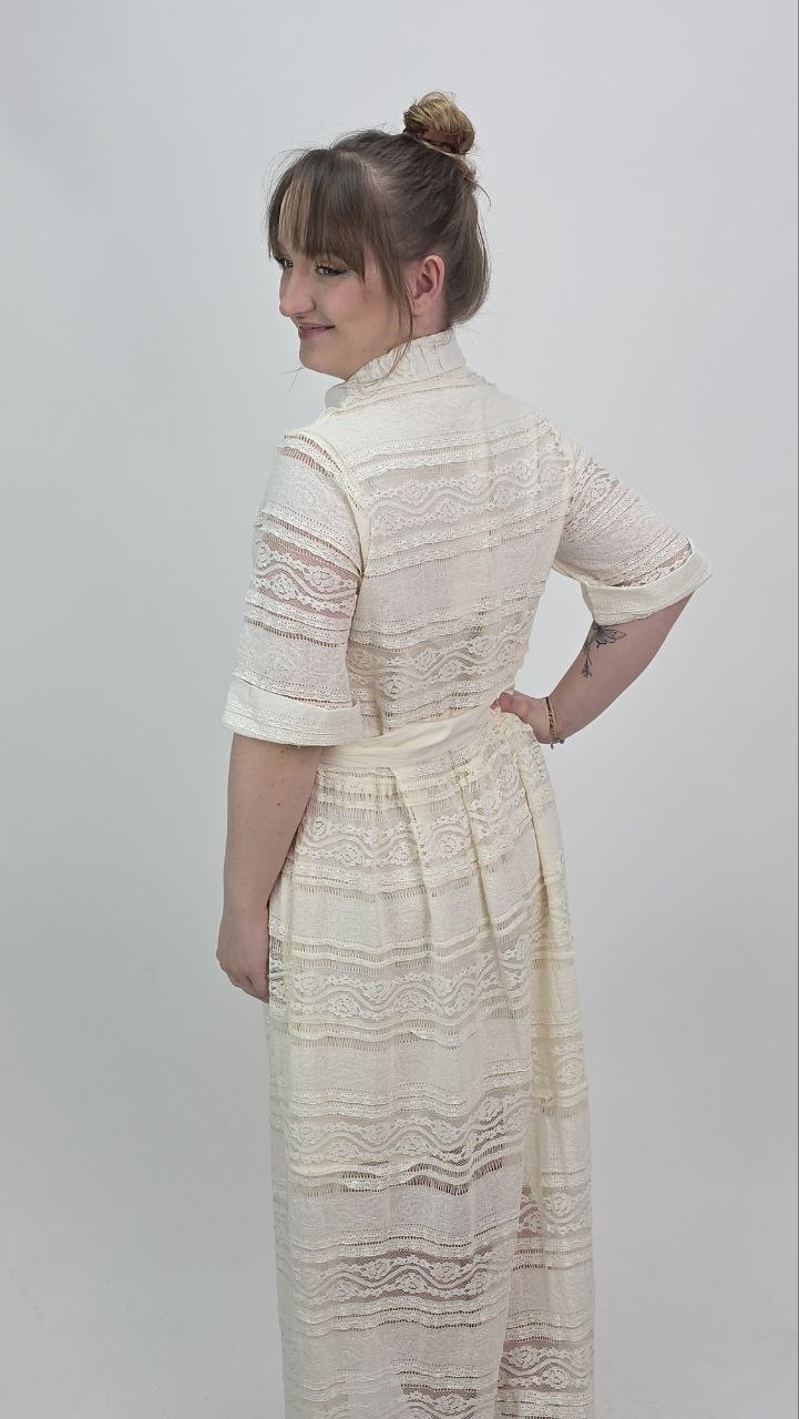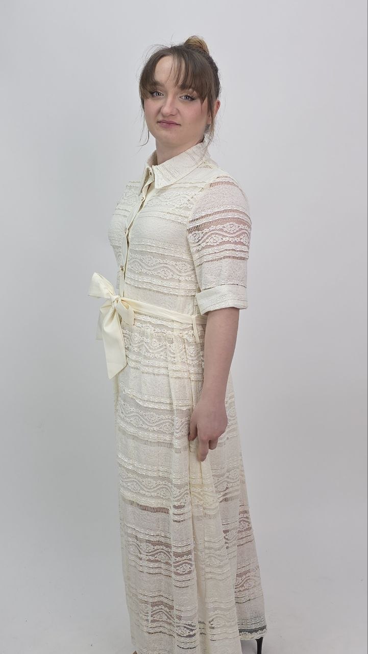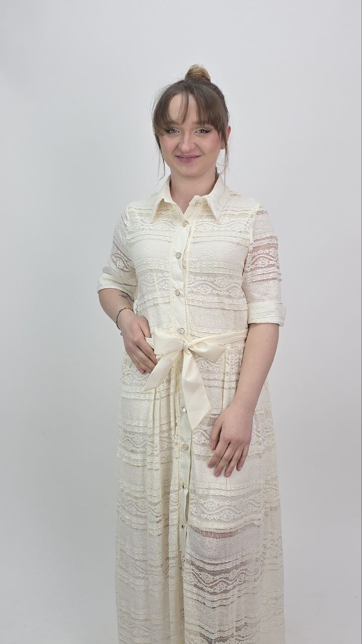 Zjawiskowa sukienka maxi o romantycznym charakterze, wykonana z miękkiej, przyjemnej w dotyku koronki, która subtelnie podkreśla kobiecą sylwetkę.
